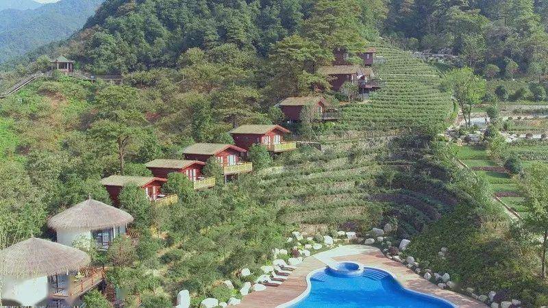 虽然只有15间客房,但民宿的占地面积足足有1000亩地。1000亩是多大?也就三个鸟巢差不多吧。这里面除了原始的山林,还有300亩茶田,各种各样的植物、花草。