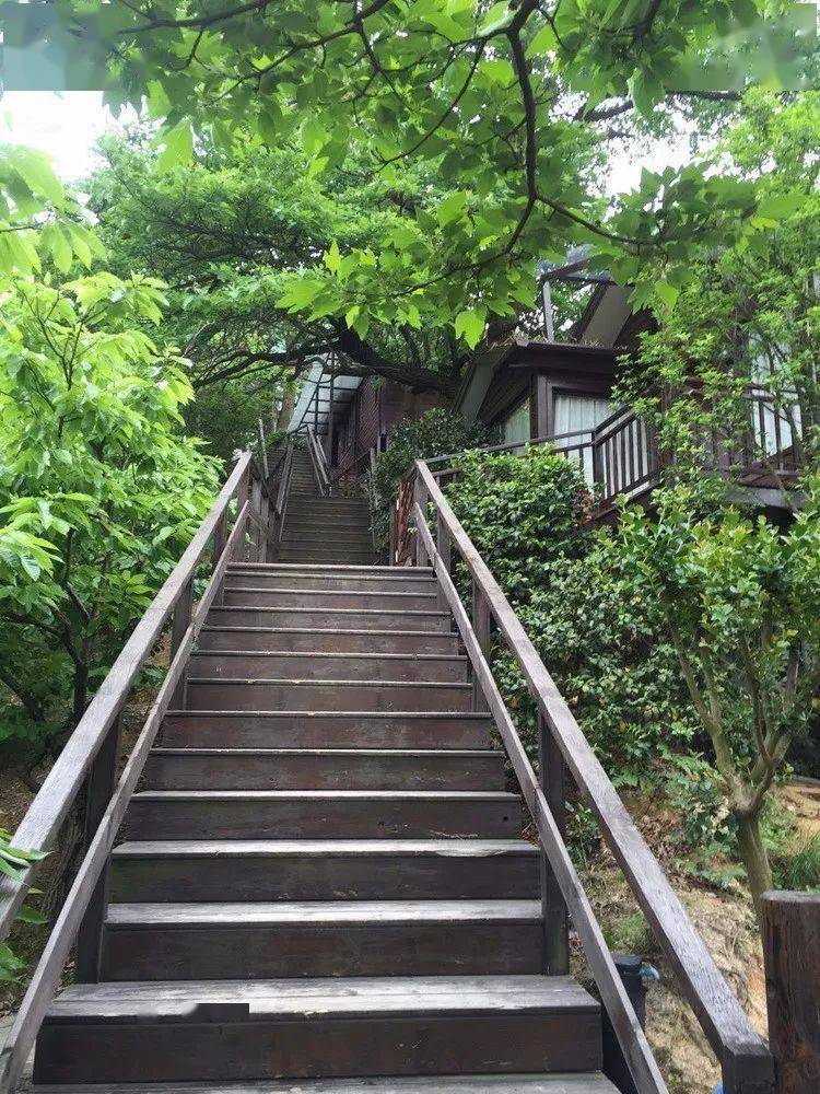 通往房间的路要沿着一条阶梯向上走,阶梯两边长着遮天蔽日的大树,在夏日留下一片农荫。