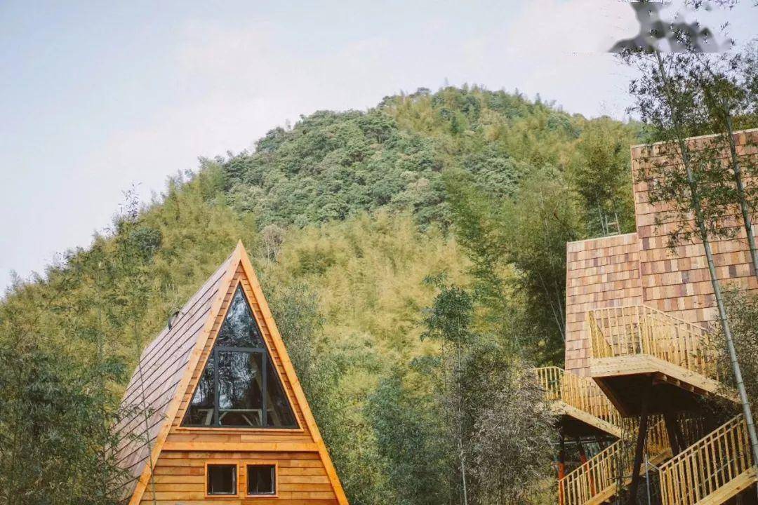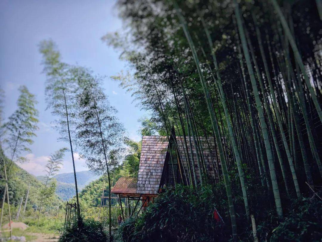 15幢山体别墅及树屋依山傍树而建,草棚木屋的建筑风貌,茶树梯田掩映,与平水的秀水青山交相辉映。踩着林荫间的楼梯抬阶而上,单体或连体别墅高低错落有致,设有夯土圆屋、山居木屋、亲子树屋、阁楼树屋等7种户型。