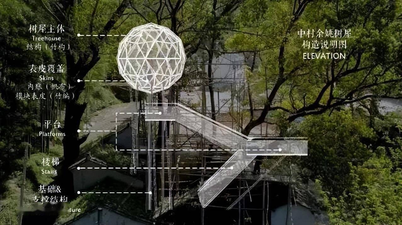 树蛙部落位于余姚鹿亭乡中村,中村地处四明山山脉,古迹白云桥所在便是余姚与海曙的交界处。整个中村沿着晓鹿溪两岸而建,典型的四明山传统民居,树蛙在建造过程中借鉴了不少当地的做法。