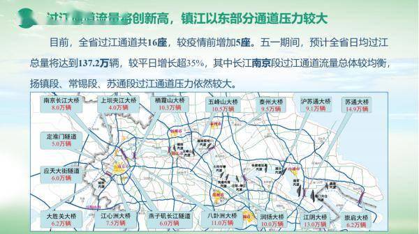 《指南》分为“通行环境”“流量预测”“拥堵预警”“出行提示”四大板块。标示了公路施工路段、错峰和临时限行路段、易拥堵路段及临时封闭收费站和高速公路服务区特情。《指南》预测,今年五一期间江苏高速公路日均出口流量将超400万辆,过江通道流量将创新高,镇江以东部分通道压力较大。