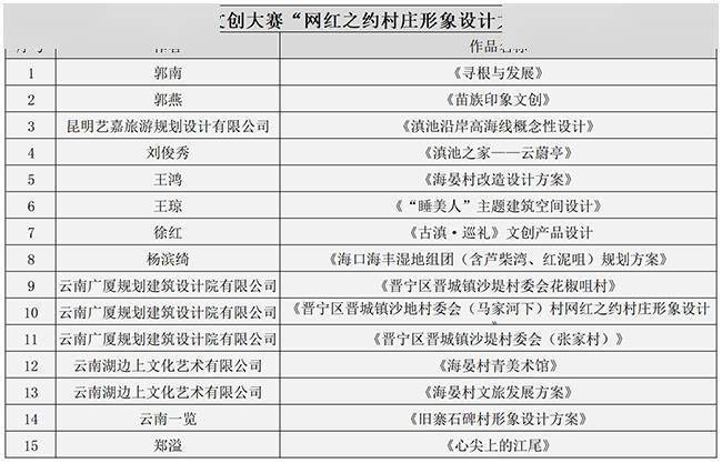 昆明滇池国家旅游度假区第二届文创大赛初赛入选作品名单