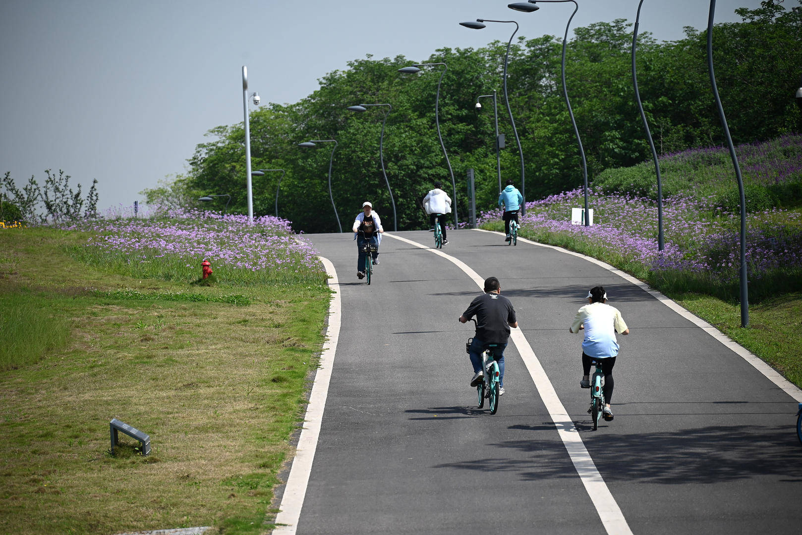2022年5月4日,市民在青龙湖湿地公园段骑行(资料图)