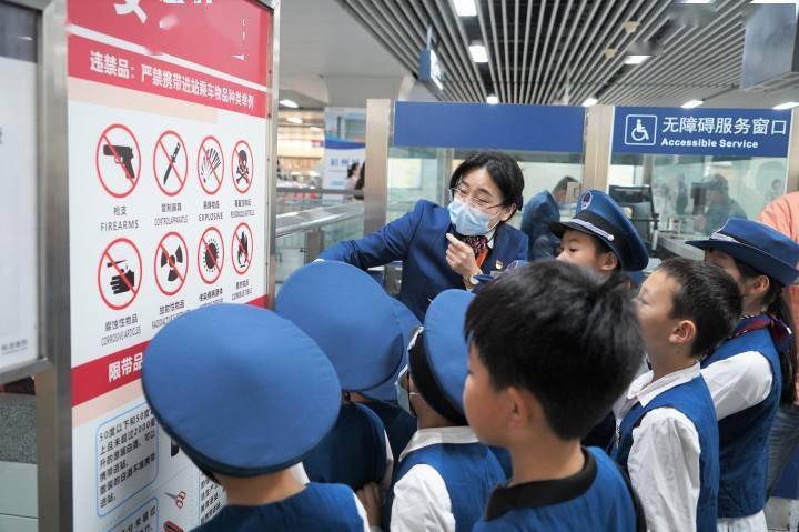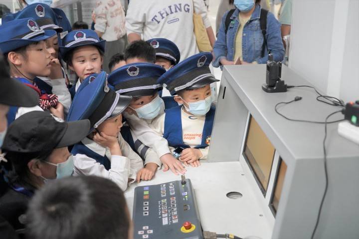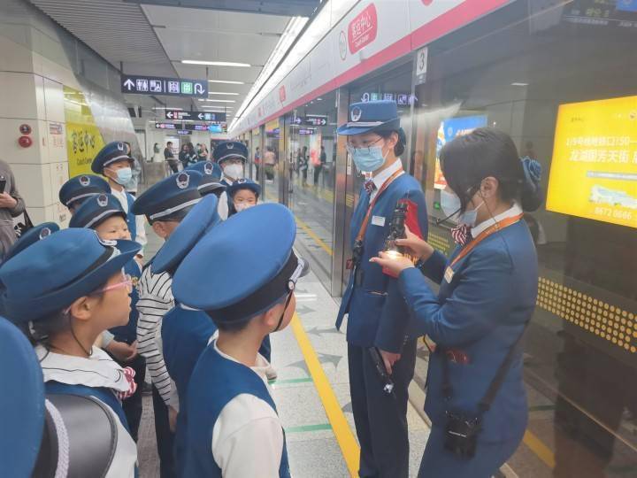活动中,“小小地铁人” 来到东城地铁体验馆,穿上小小的地铁制服,在杭州地铁1号线向阳路站站长舒一言和客运中心站值班员杨荣婷的带领下参观了客运中心站,零距离学习了乘坐地铁安全文明知识。除此之外,还为大家揭秘了站台上接发列车的手势动作、车站各项设施设备以及消防设备的使用方法等,让小朋友们在沉浸式体验中收获满满的课外知识。
