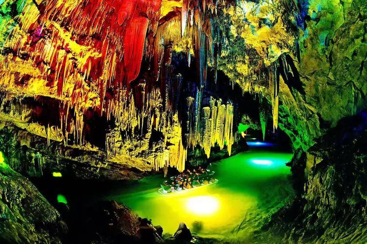 人间仙境,别有洞天。旱洞、水洞,纵横交错,石笋、钟乳石形态各异,每一个拐弯的地方都有着不同的变化,一景又一景,用瞬息万变来形容一点不为过,让人目不暇接。