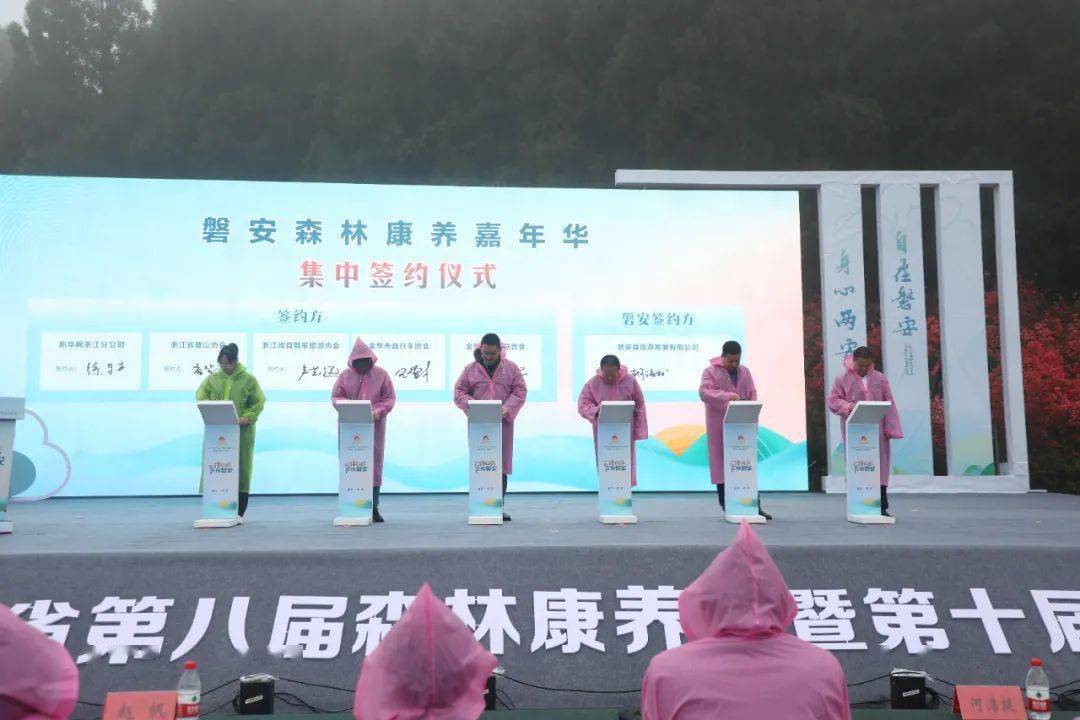 开幕式上,我县作磐安森林康养推介,磐安森林康养嘉年华集中签约并正式发布系列活动。全国首个“健康气象服务研究基地”落地磐安并在现场授牌。我县被授予“浙江省古树名木保护先进县”和“浙江省林业推进共同富裕十大典型”,获赠“磐安共富山居图”。