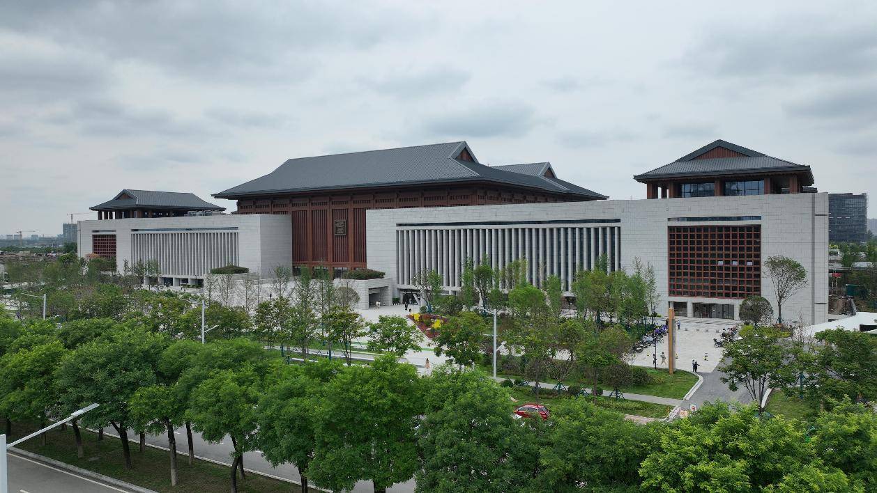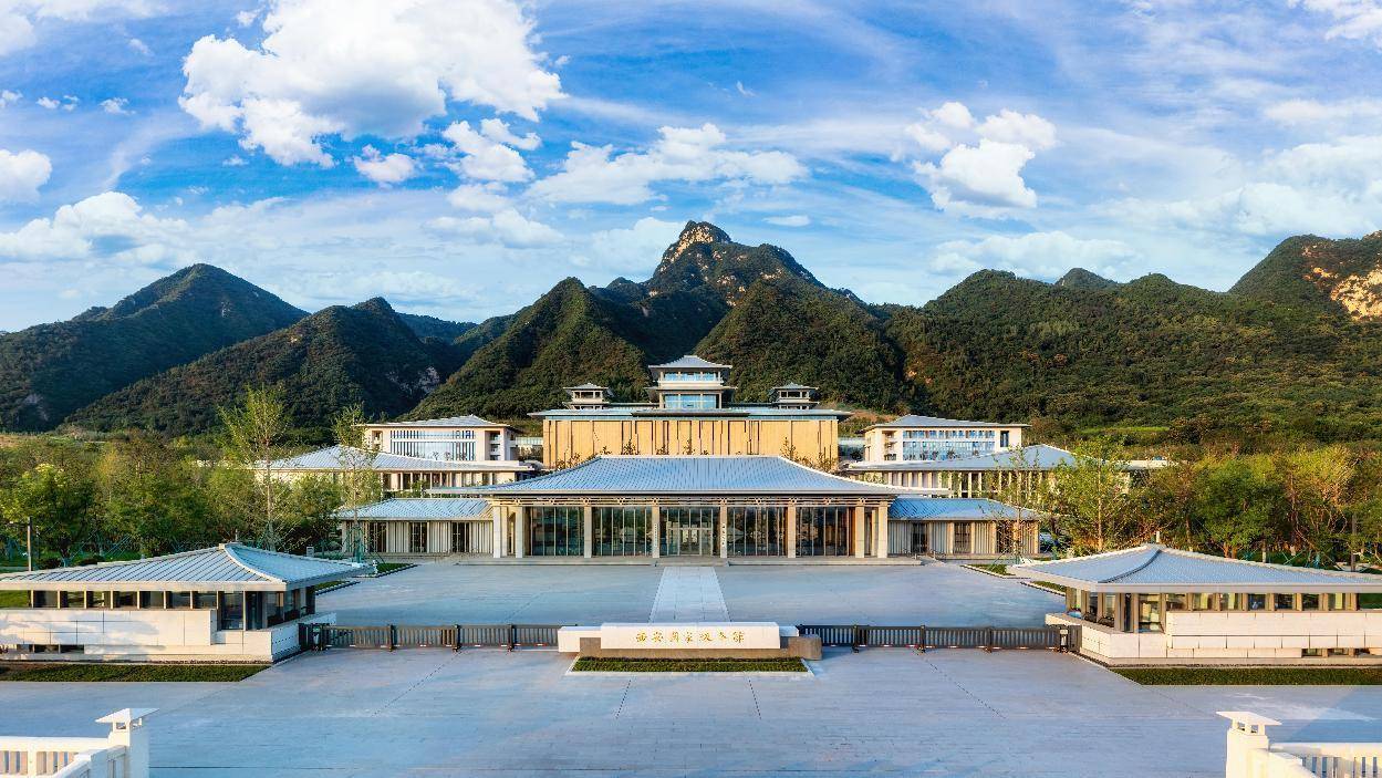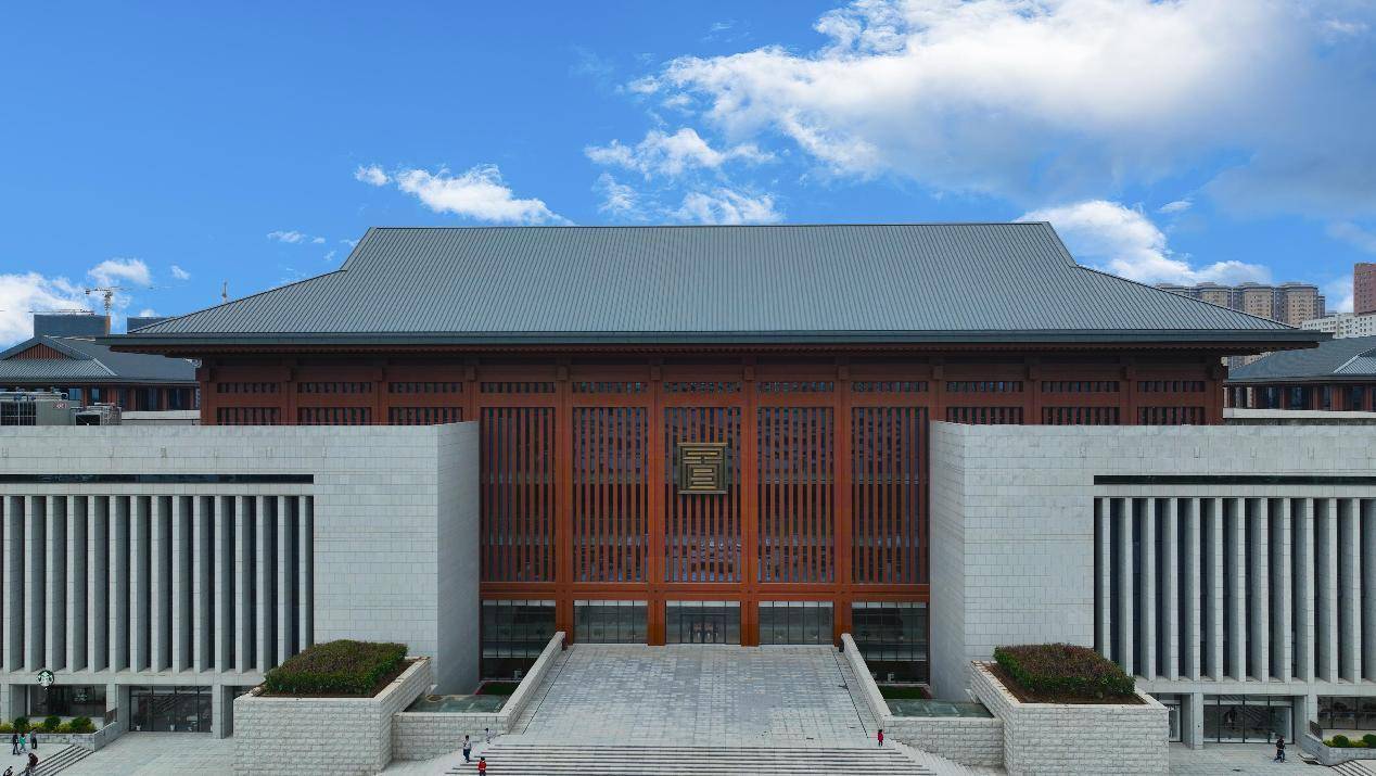 位于西安高新区的西安国家版本馆南倚秦岭,北望渭川,主体为高台建筑,呈现出大气磅礴的汉唐风格。