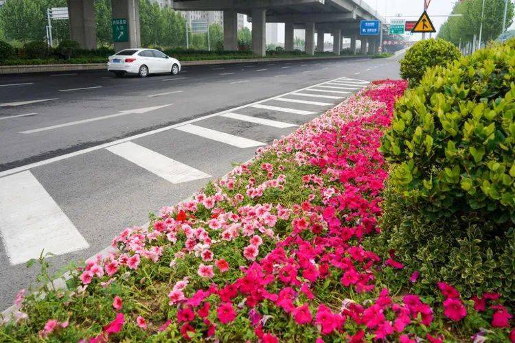 这里的花卉花期长、耐旱,所应用的花卉均为观赏性强、易养护管理的欧石竹、垂吊牵牛等品种,色彩丰富,形态优美,充分运用了不同种类花卉色彩的差异和植株高低错落的层次,丰富视觉效果,打造优美街头绿化景观,受到往来居民的一致好评。