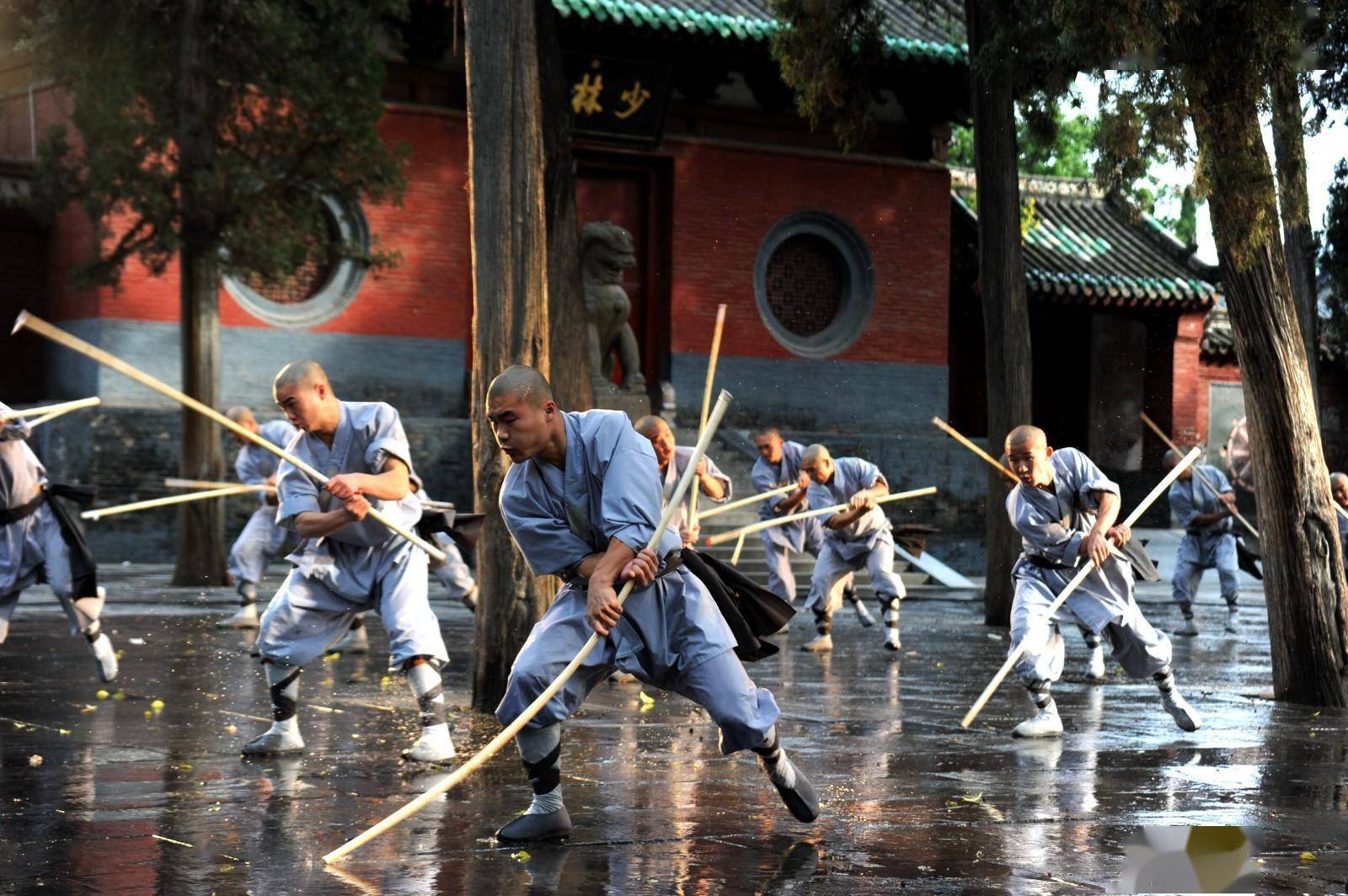 少林武僧在山门前习武