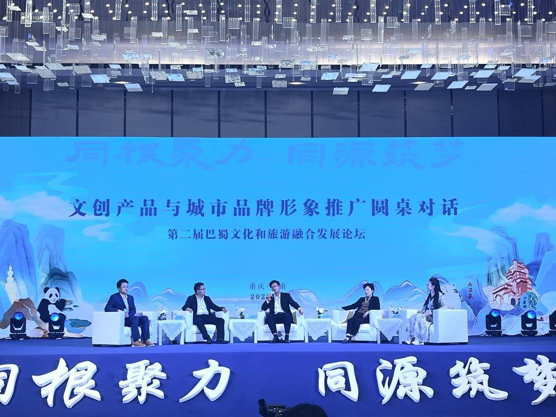 在文创产品与城市品牌推广圆桌对话环节,川渝两地文旅主管部门负责人与文博专家、文化创意企业负责人围绕文创产品与城市品牌形象推广进行了圆桌对话。