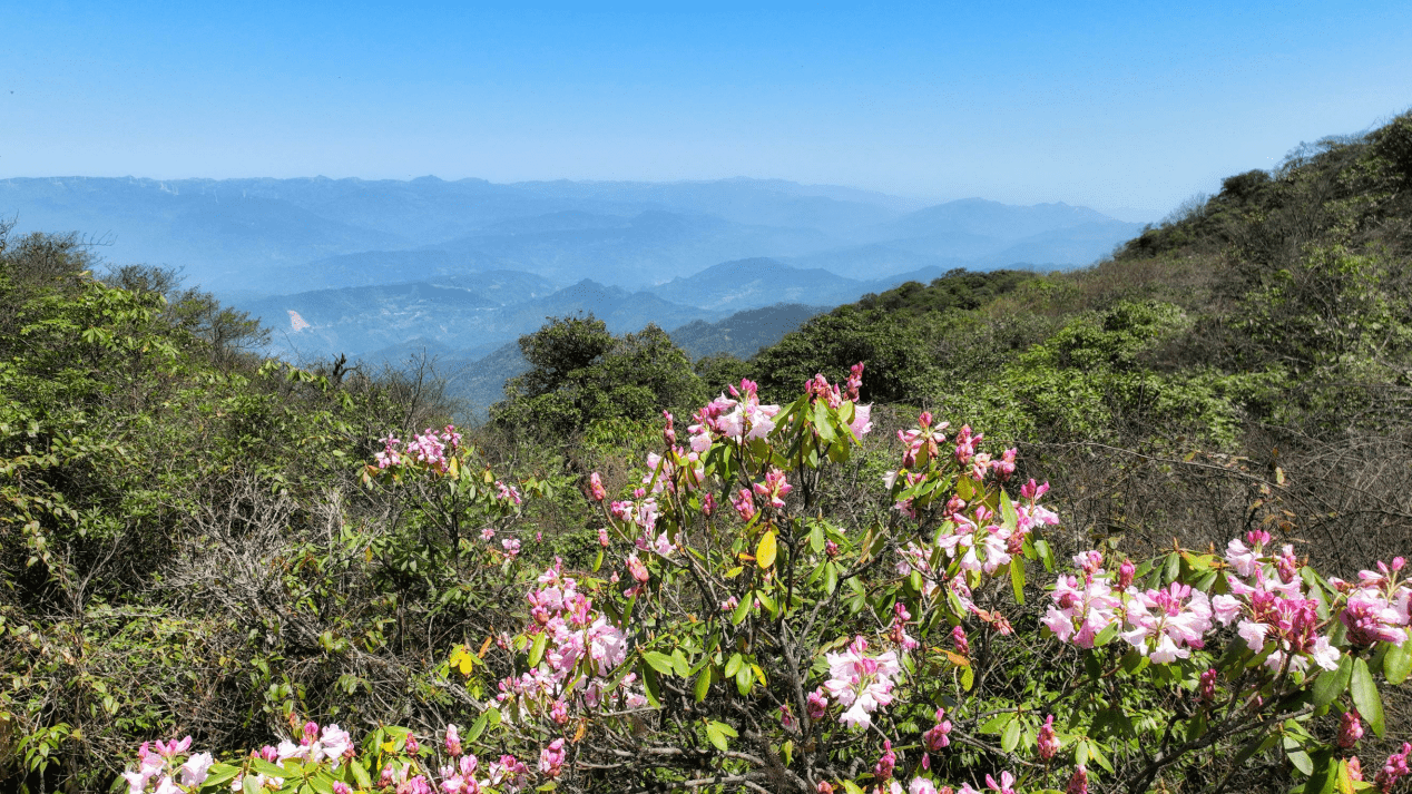 猫儿山绵延起伏的山岭间杜鹃花绽放(央广网发 谢一丹 摄)