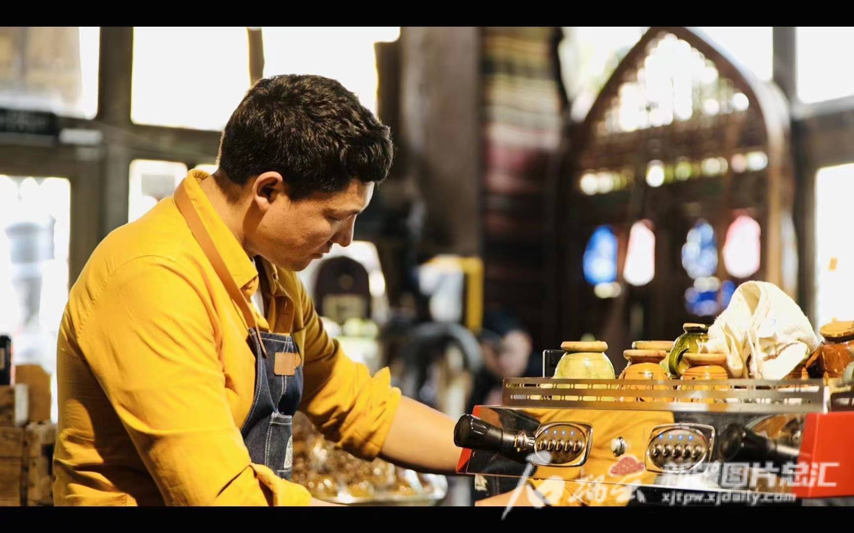 郭敬涛是湖南人,原本在长沙市当咖啡师,2020年旅游时来到喀什古城,一下子就爱上了这座古城,爱上了阿丹家的“喀什咖啡”,他选择留了下来。郭敬涛教阿丹做他在长沙时做的各类咖啡及饮品,阿丹教郭敬涛煮喀什特有的药茶,两个年轻人相互学习,一起创造新品,直到2021年底郭敬涛回长沙,这段日子让阿丹至今难忘。