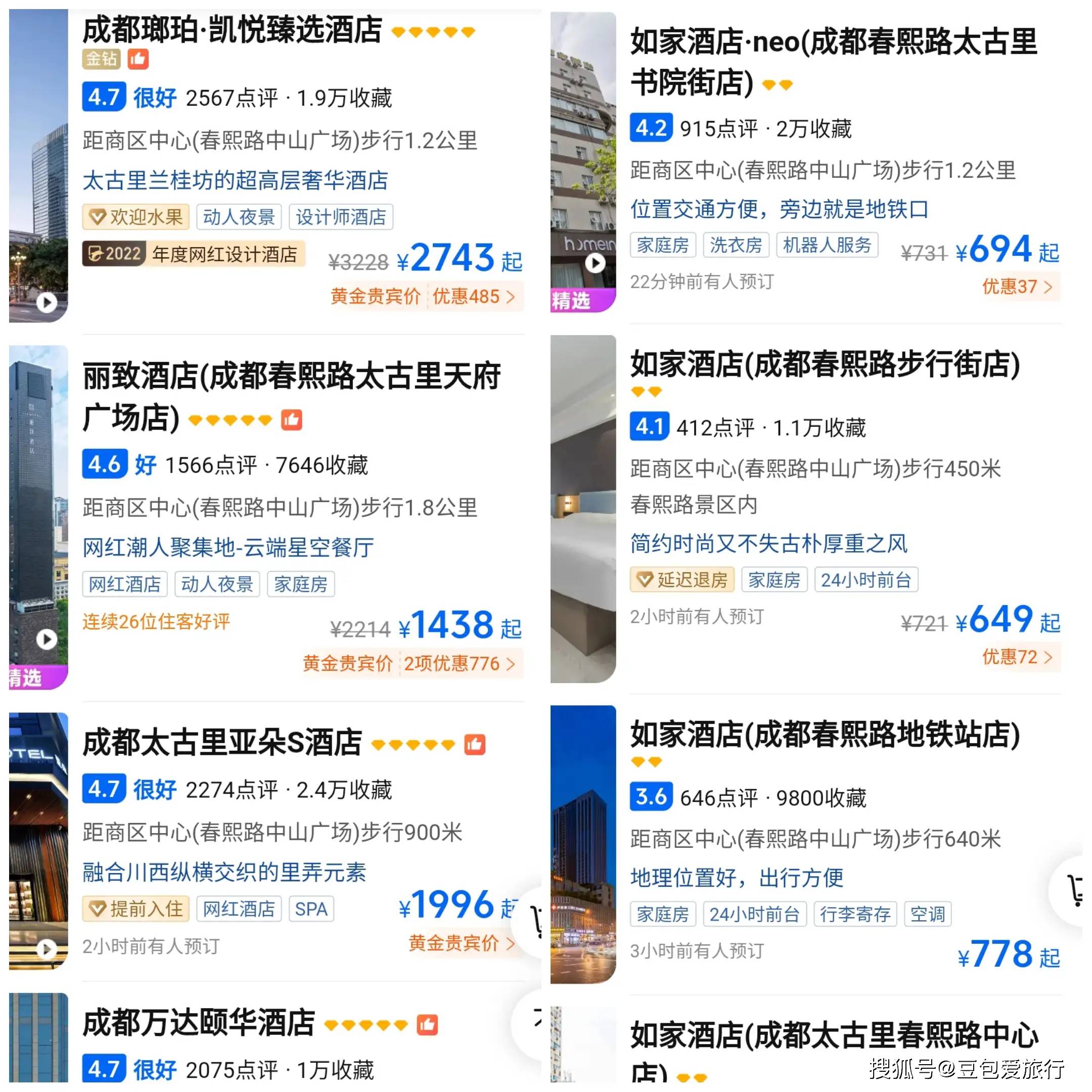 成都的春熙路附近星级酒店价格都在1500元以上,如家等快捷酒店价格也都在600元以上。看来要去成都吃上几天美食,最贵的不是美食的价格,而是房间的价格。