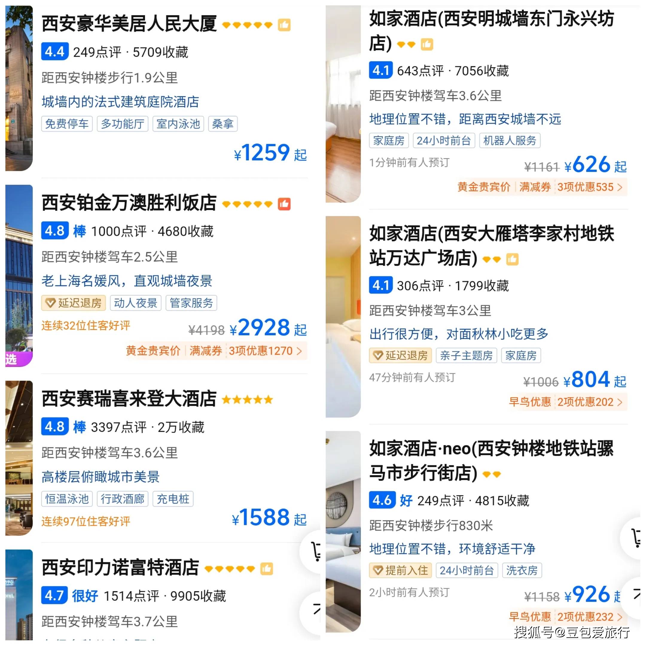 以西安钟楼附近为例,星级酒店房价价格都在1500元以上,如家等快捷酒店房价也都在600多元。五一假期期间游古城西安,也需要破费一把了。