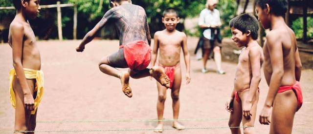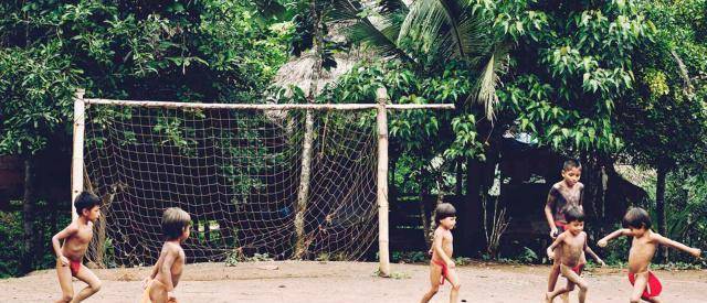 村寨的中心有个简陋的足球场。一些五六岁的小男孩正在光着脚踢足球,他们几乎全裸,只有裆部有一块小布遮羞。