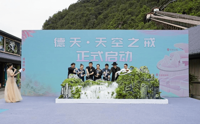 同时现场还发布了“天空之戒”IP衍生产品《天空之戒》、《天空之眼》、《天空日记》,寓意爱在德天,见证永恒的爱情。活动现场,来自中团文化的古风小姐展演/巡游和天空之戒高空婚纱走秀活动,聚焦诸多媒体。尤其是天空之戒高空婚纱走秀活动,很是浪漫。针对该项活动,主办方还发布上线了#去中越边境寻天空之戒抖音挑战赛,邀请广大网民一起开启德天天空之戒寻心之旅。