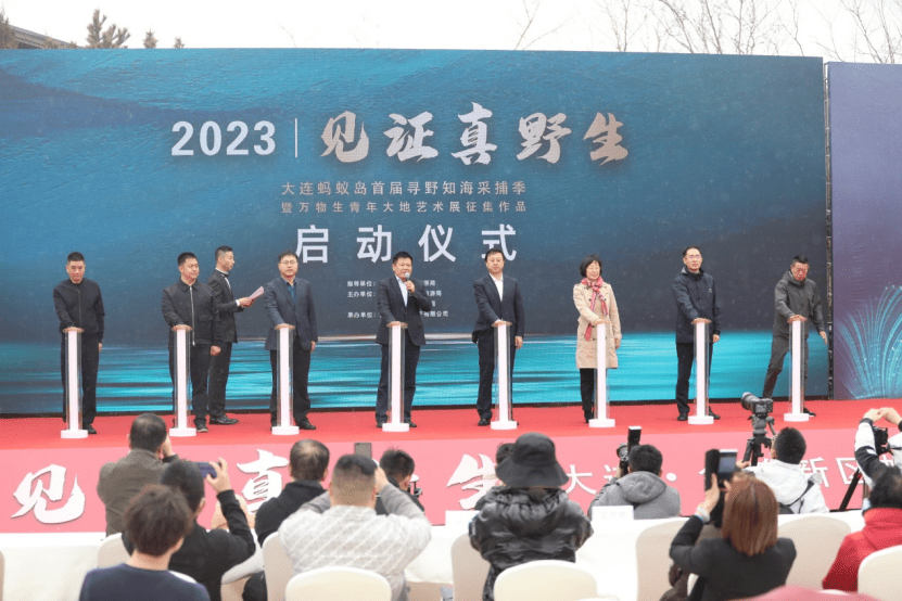 2023年4月25日上午9时,金普新区风景如画的蚂蚁岛上,伴随着喧闹的锣鼓和热闹的舞龙表演,由金普新区文化和旅游局、金普新区海洋与渔业局共同主办,大连蚂蚁岛海产有限公司承办的“见证真野生——大连蚂蚁岛第一届寻野知海采捕季暨万物生大地艺术展征集作品发布会”活动隆重启幕!市文旅局、区文旅局、区海洋局等数位相关领导莅临活动现场,此外,来自众多业界知名人士、主流新闻媒体记者等200余位贵宾也共同参与了本次活动。