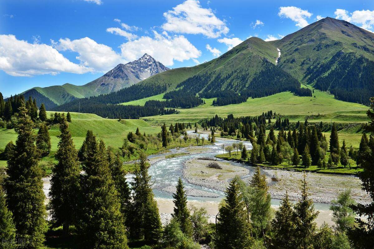 天山脚下的琼库什台,鲜花草原、牛羊成群、蓝天白云和白色毡房组合成的漫画世界。神奇天马的故乡昭苏,风景壮美宛若塞外,在这里能看到真正的万马奔腾。