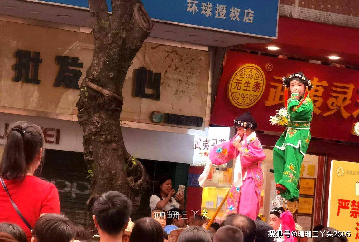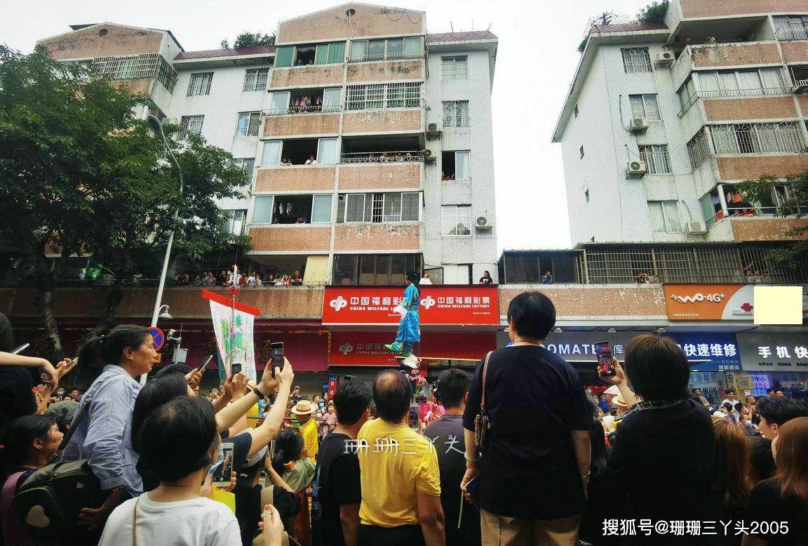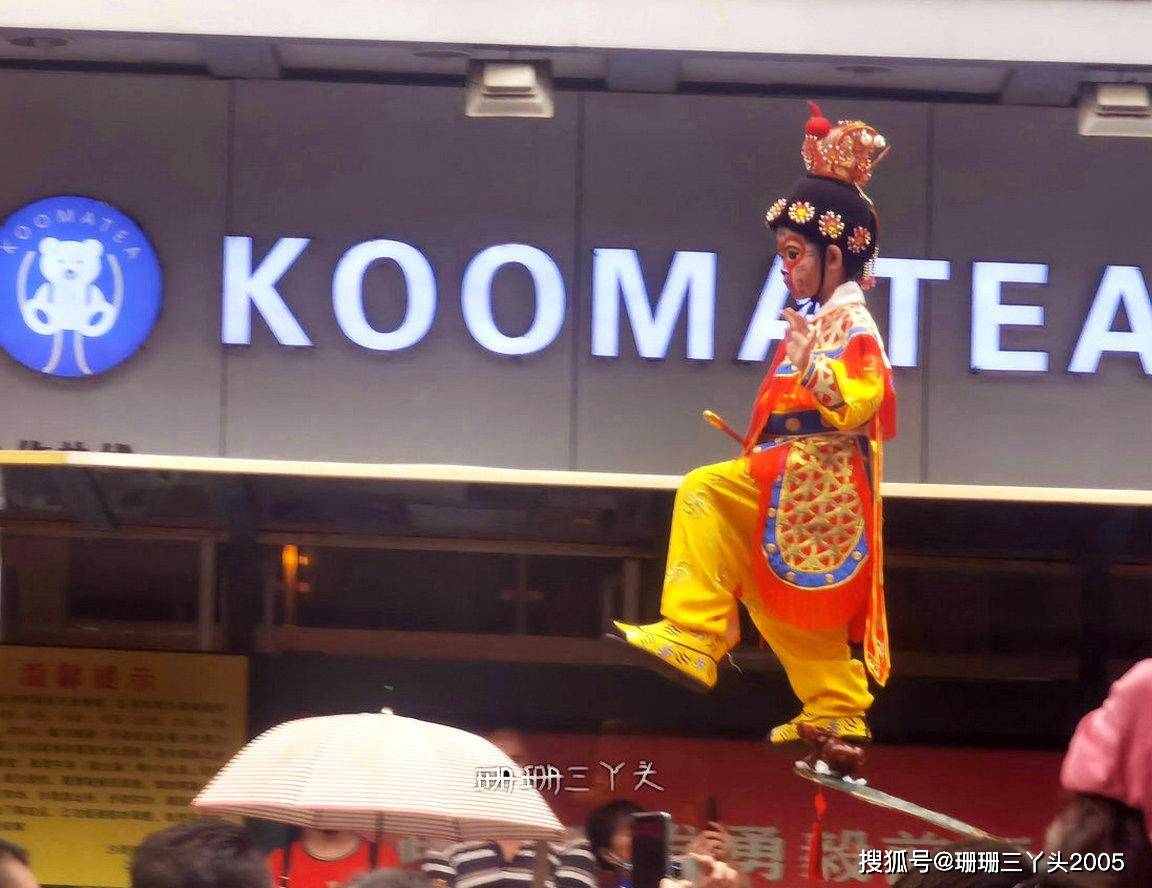 珊珊三丫头清晰地记得第一次看“飘色”时,就忍不住发了多声“哗哗哗……”,因为看到一个年龄很小的小朋友,化了“古戏剧”妆容,穿着古装“飘”在了半空之中,当时就好奇:小朋友这么小,被飘在半空不害怕吗?是怎么飘上去的?