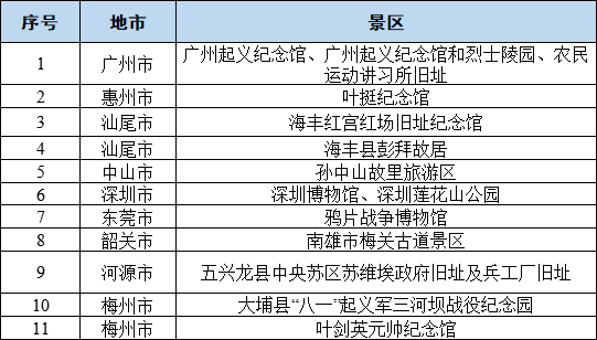 ➤预计热门红色旅游景点11处: