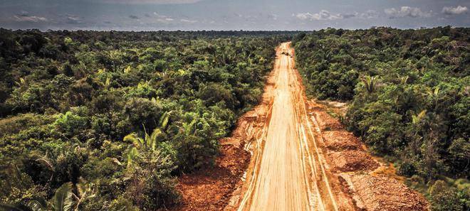 (图片说明:亚马孙雨林之间的路更容易砍树)