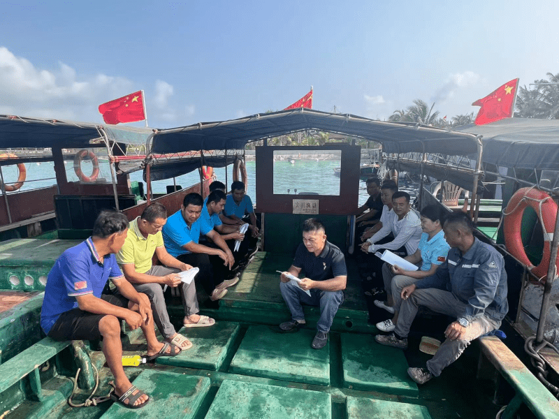 4月25日,三沙市七连屿工委赵述社区党支部把主题党日活动延伸至渔船上,切实推动党的理论政策学习宣传进岛礁、上渔船。