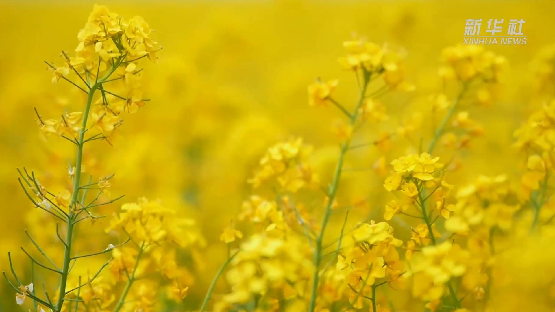 近日,河北省任丘市于村镇千亩油菜花次第开放,吸引众多游客前来赏花游玩,金黄色的花海成为当地网红打卡地。