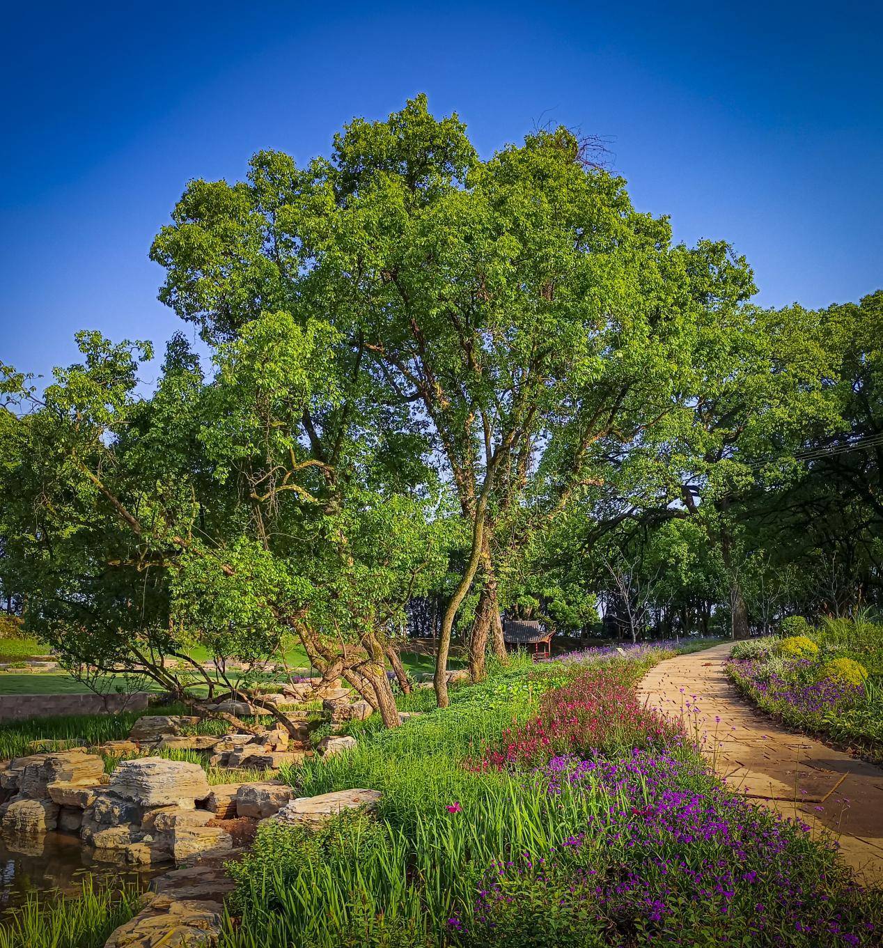 从明善祖祠登上十几米高的山坡,这是从吉安经安福去湖南的古驿道,它如今有了新的名字——“后山步道”。由花岗岩铺就的步道上,早已不见意气风发的赶马人,只留下了一路踏花归去马蹄香,步道两旁,枝繁叶茂的香樟林摇曳着初生的嫩叶、青青草地上簇拥着五彩缤纷的花朵。