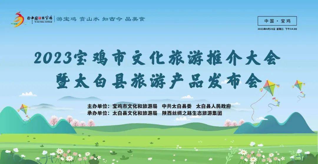 4月25日,由宝鸡市文化和旅游局、中共太白县委、太白县人民政府主办,太白县文化和旅游局、陕西丝绸之路生态旅游集团承办的2023宝鸡市文化旅游推介大会暨太白县旅游产品发布活动在古城西安悦豪酒店圆满举行。