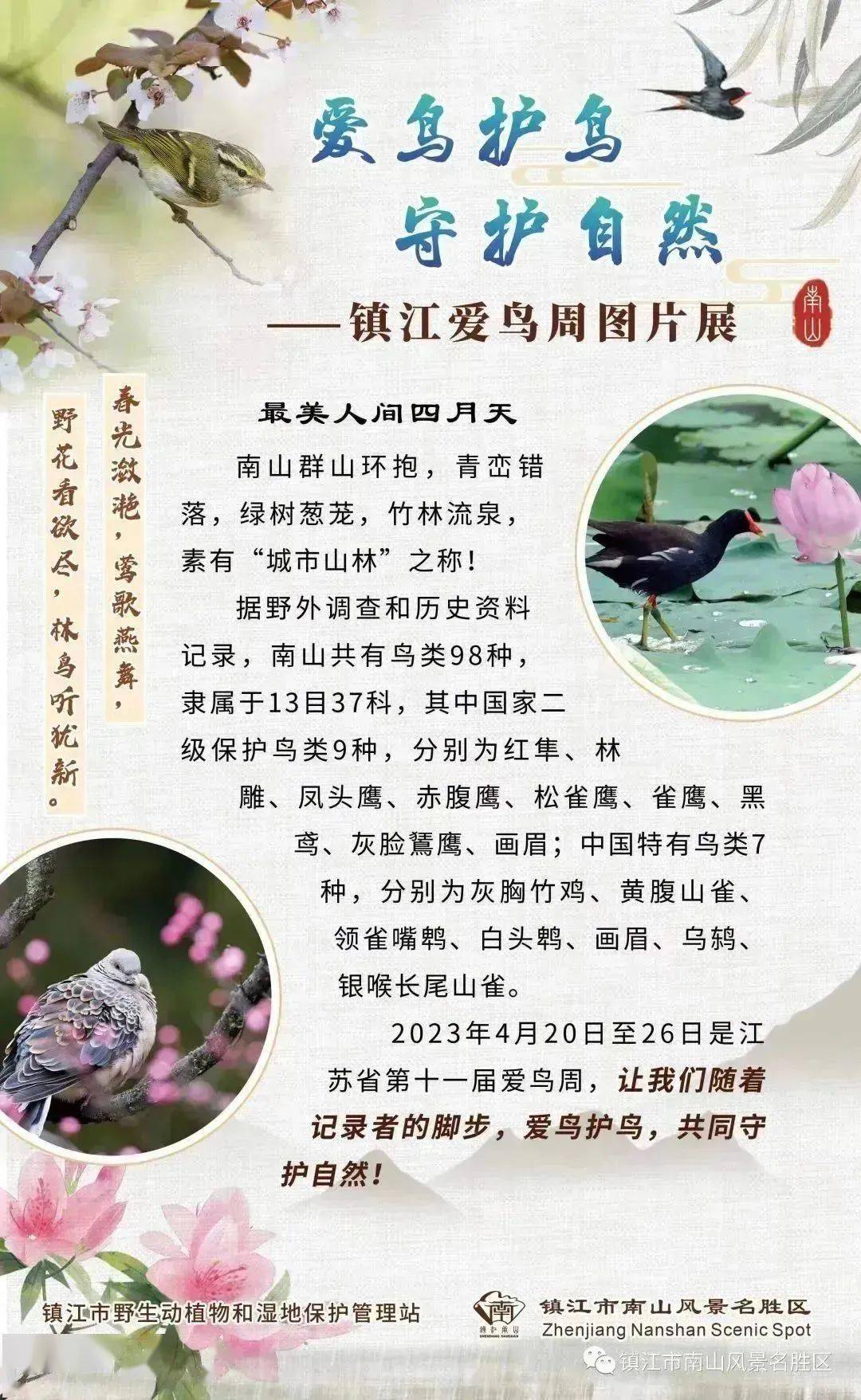 活动内容:2023年4月20日至26日是江苏省第十一届爱鸟周,让我们随着记录这的脚步,爱鸟护鸟,共同守护自然。