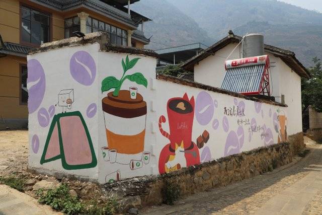来到新寨村,就能感受到村内浓厚的咖啡氛围,路边栽种的咖啡树,村内的墙壁上绘制的咖啡卡通画,都不禁让人感叹,在这里,咖啡已经不是一种普通的饮品,而成为深深融入新寨村民生活的重要组成部分。