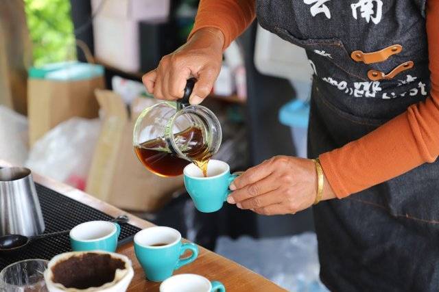 在狠抓咖啡产业发展的同时,新寨村也在探索“咖啡+旅游”的新型产业模式。新寨村村民赵华英在村里经营起一家咖啡小院,除了能让客人品尝到新寨村特色手冲咖啡外,还衍生出了品尝特色咖啡宴和体验咖啡采摘冲泡等特色旅游活动。