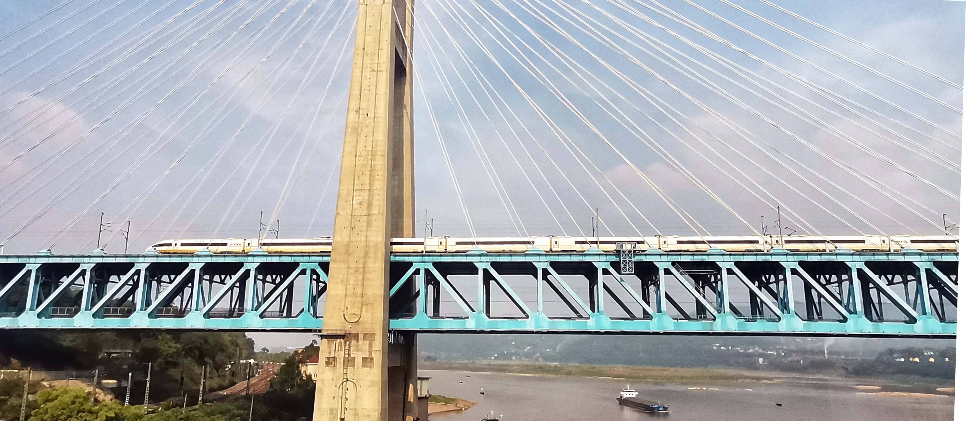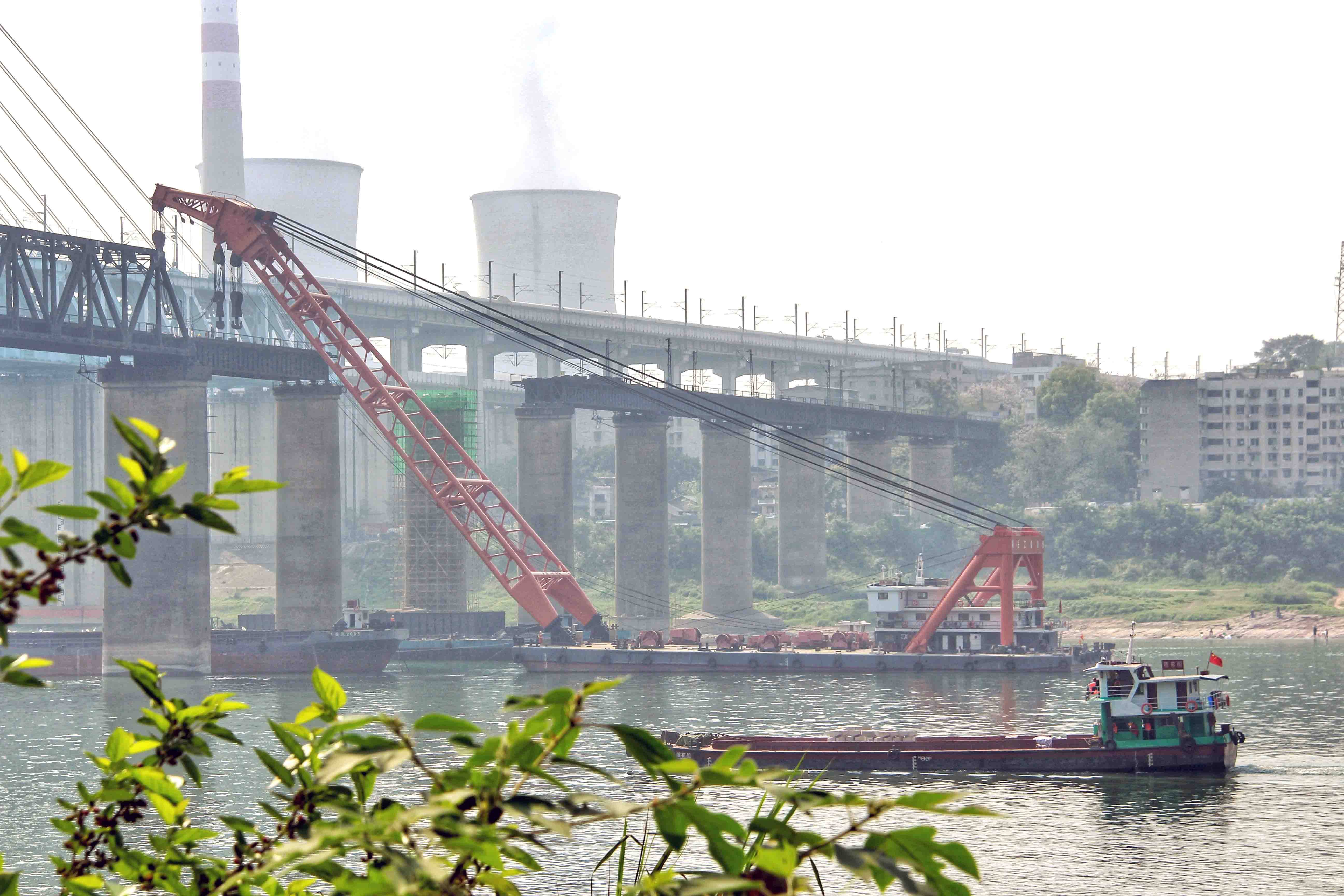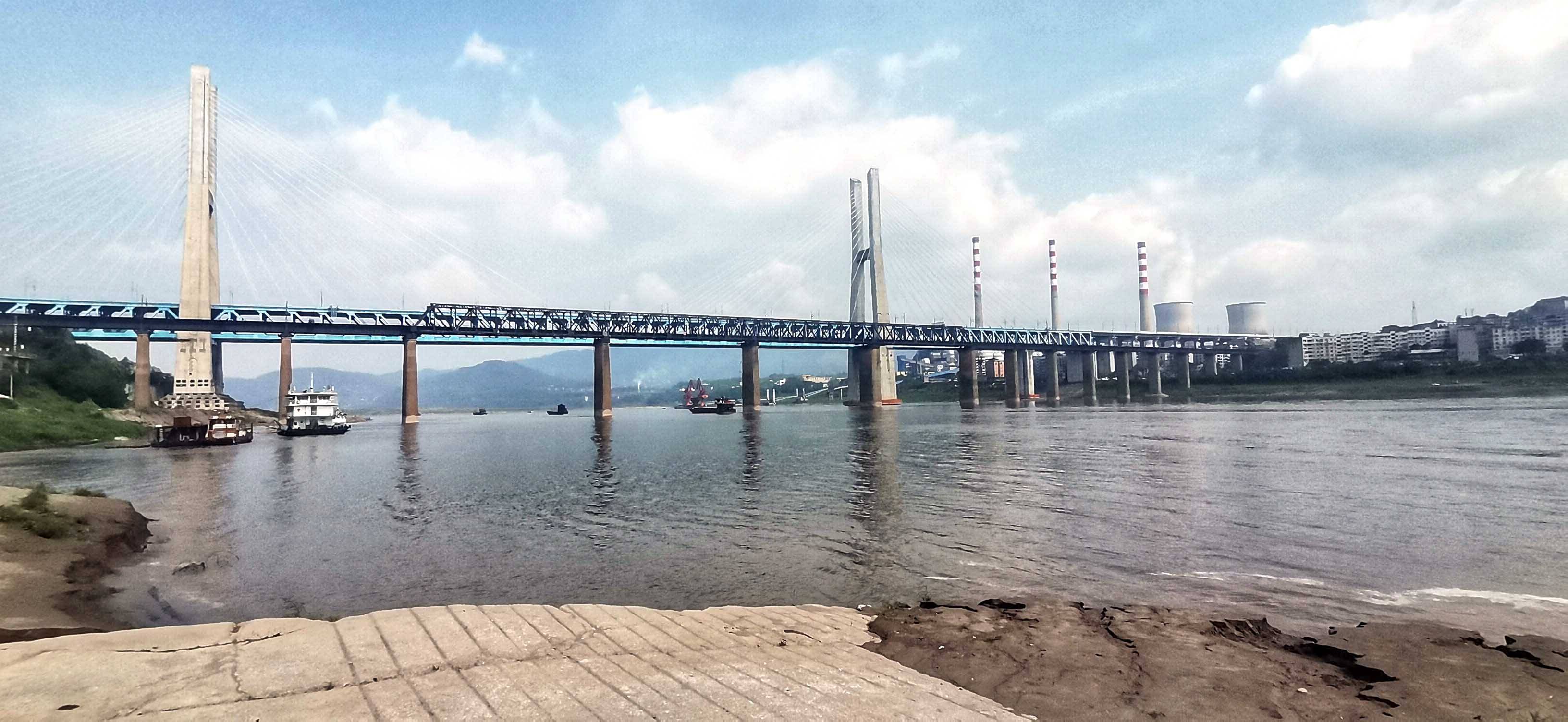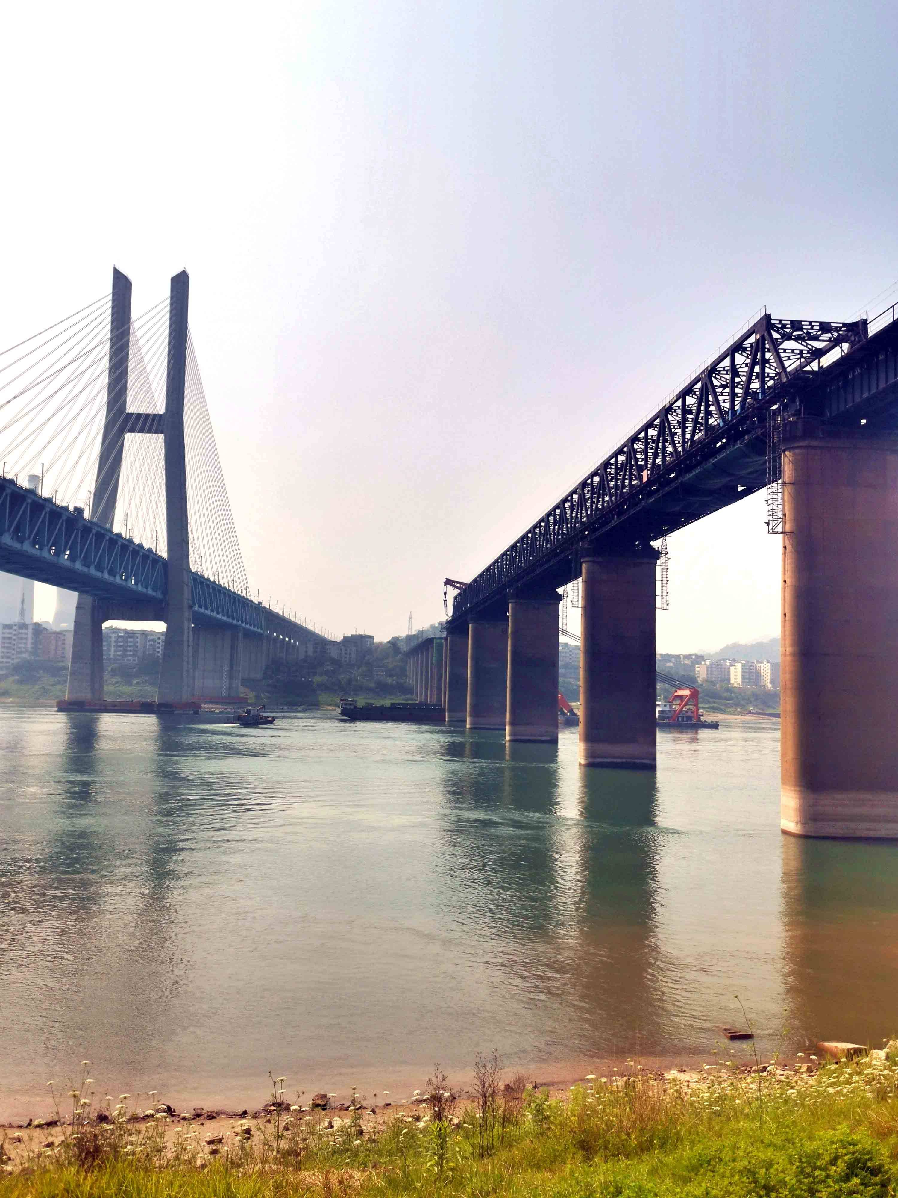 新建的白沙沱双层铁路大桥,高速列车与绿皮列车,货车同时飞驰桥上