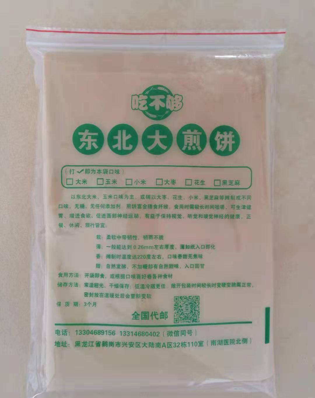 东北大煎饼,是东北人常吃的一种食品,它薄厚均匀口感柔软,富含膳食纤维, 正餐、休闲皆宜,旅行携带也非常方便。