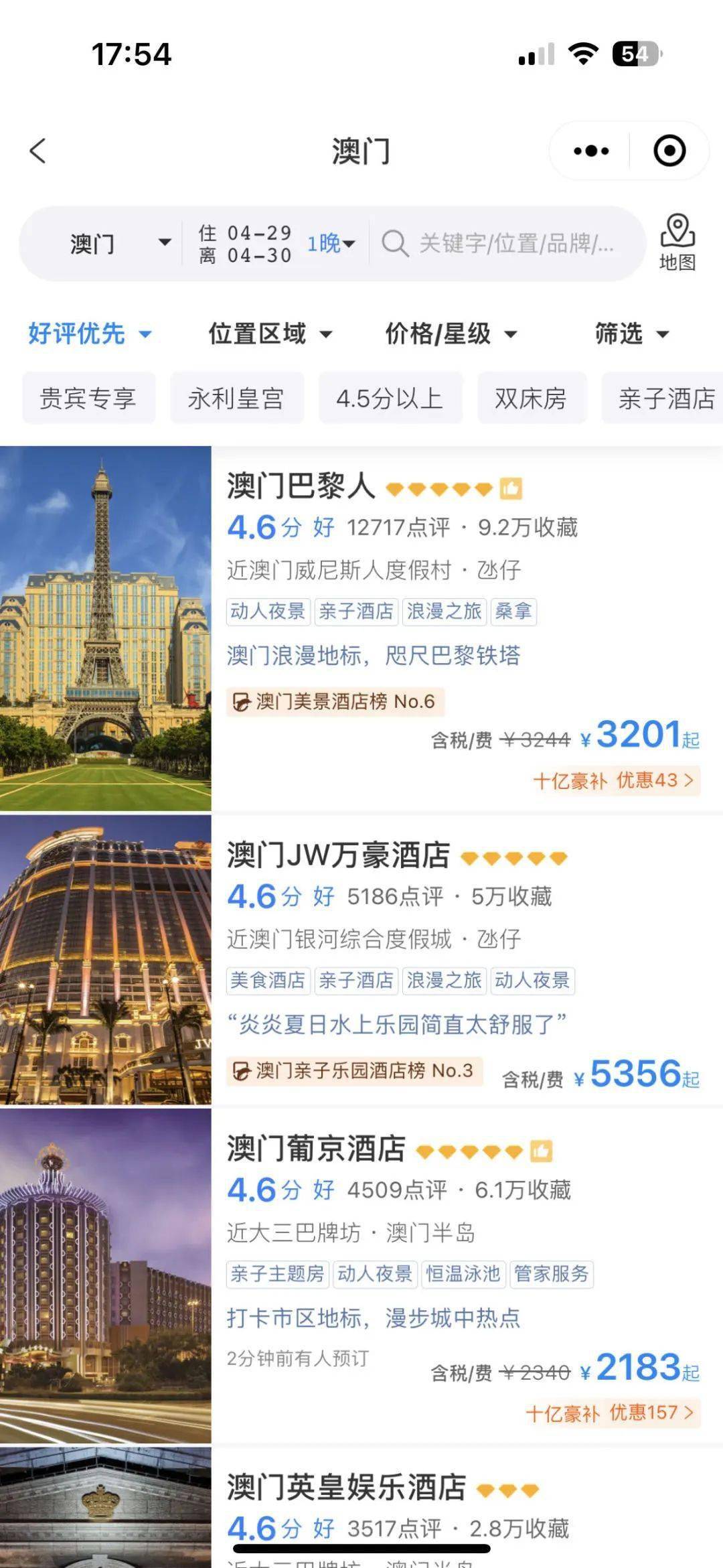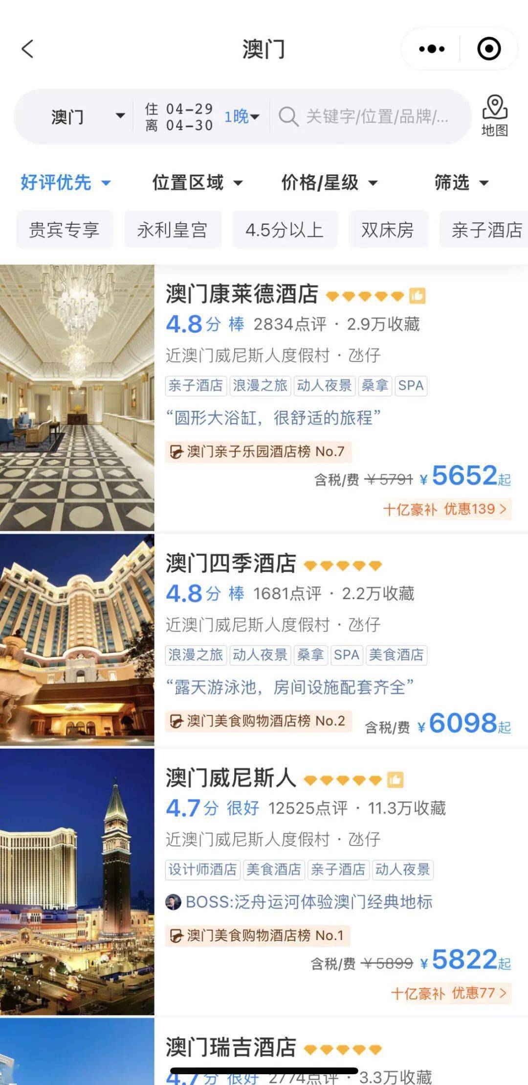 澳门酒店房价水涨船高