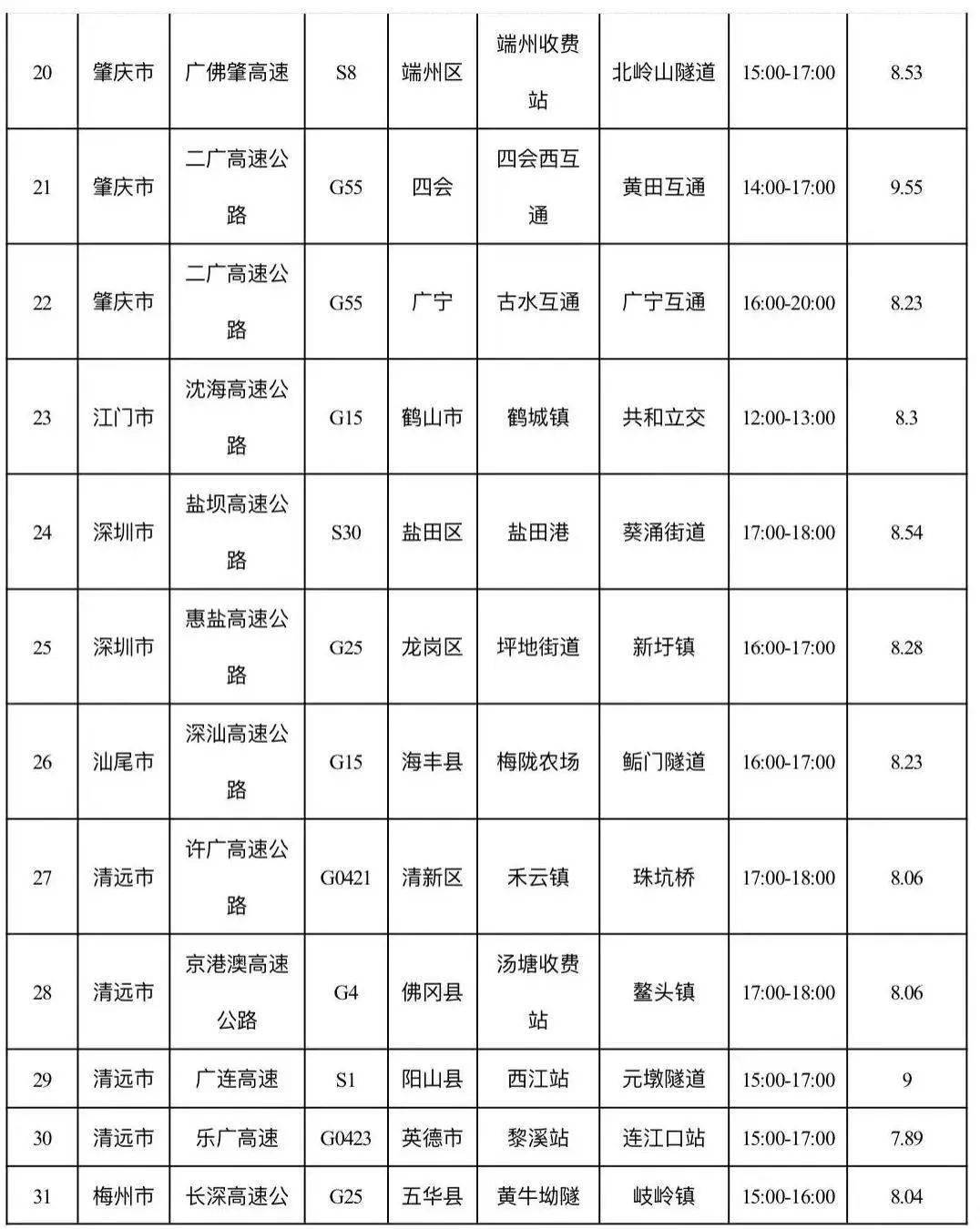 车流主要集中在珠三角往粤东、粤西、粤北各大旅游景点、度假区及各大城市周边农家乐、海滨公园等方向主干高速公路,期间将出现双向潮汐式高峰车流。