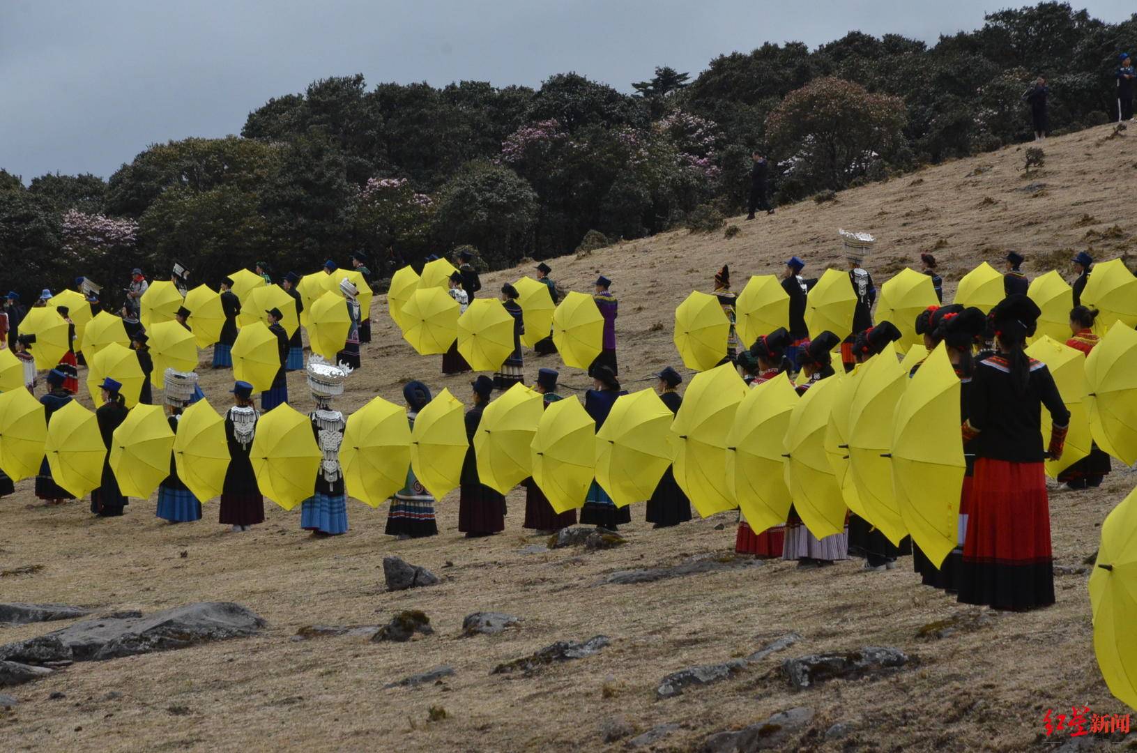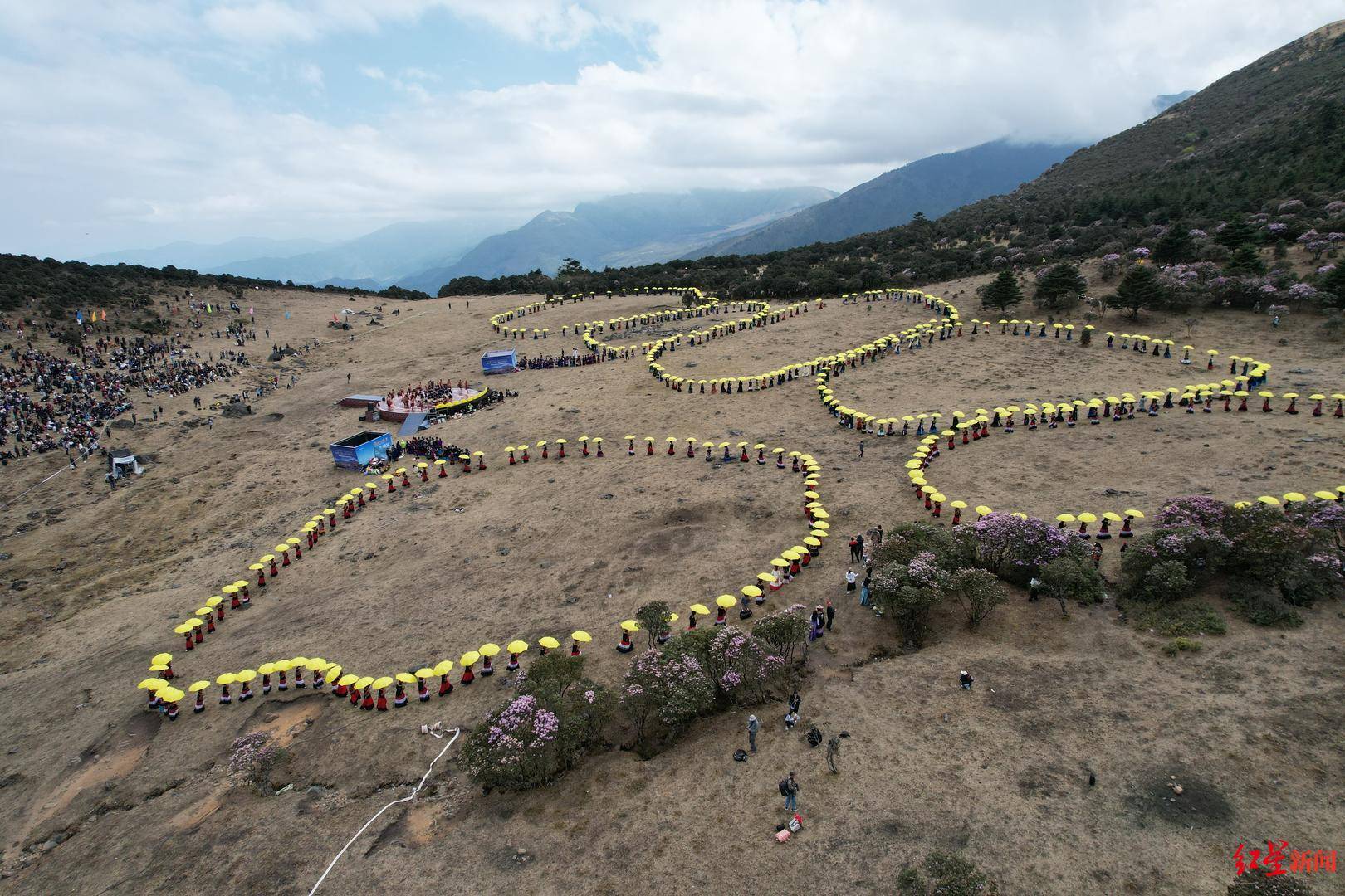 红星新闻记者在现场看到,数百名身穿彝族服饰的女子打着黄油伞,踏着轻盈的舞步缓缓走来,朵洛荷表演场面十分壮观。据悉,“朵洛荷”是彝族民间的一种舞蹈,意为火把节之舞,只限于女子集体表演的集歌舞于一身的艺术表演形式。