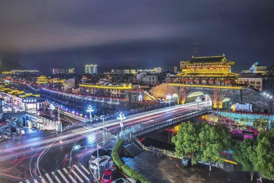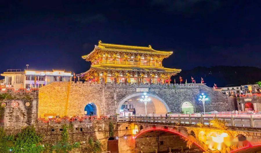 如若夜间来到济川门附近,但见霓虹灯下,七彩济川门与汀江倒影成趣,交相辉映,如同置身天界。