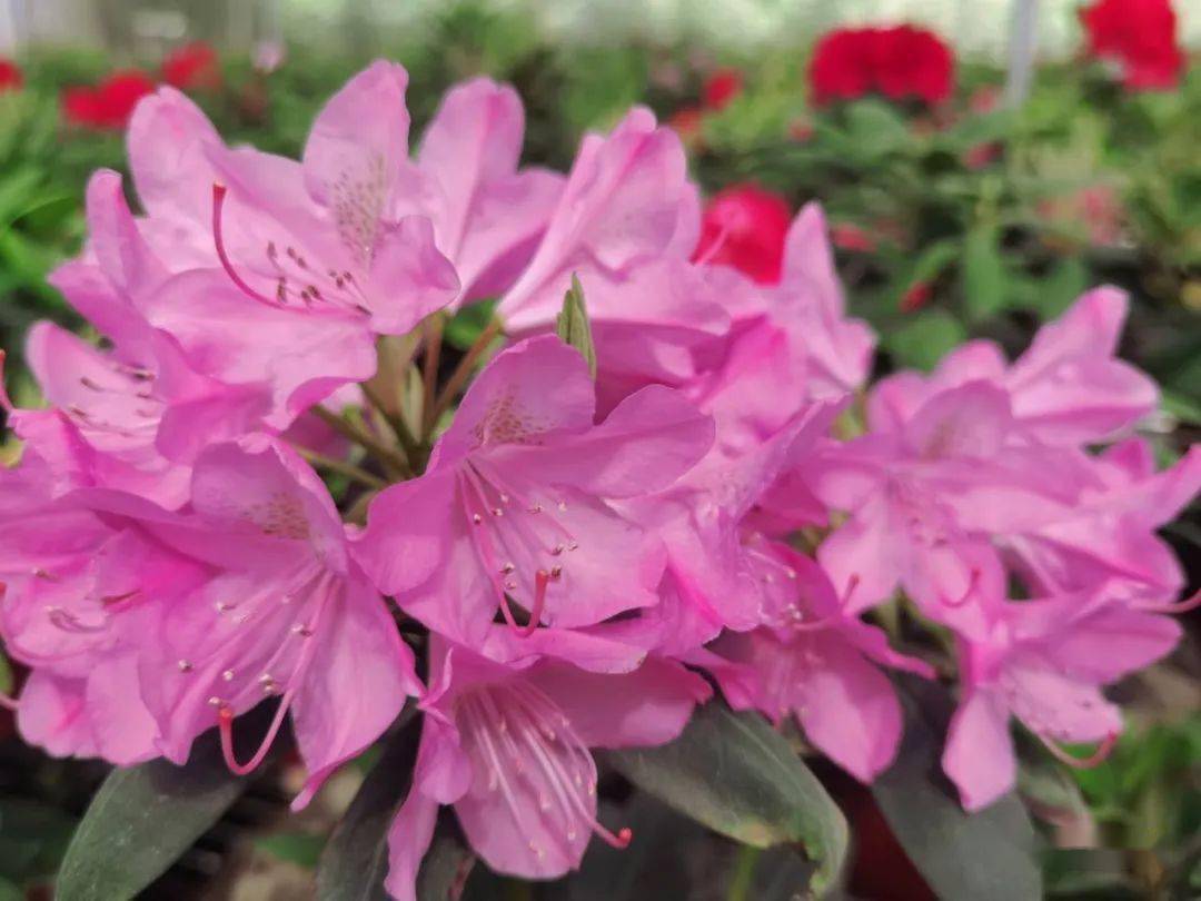 据悉,产业园里的新品种杜鹃是从昆明等地引进的,目前已经培育了四年左右的时间,共有三万余株,品种有红珍珠、紫凯特、锦缎等十余个名贵品种,已经有万余株进入盛花期,高山杜鹃花期比较长,可长达3、4个月,花径巨大,量高可大近50公分,四季长青,而且颜色各异, 观赏性极强。