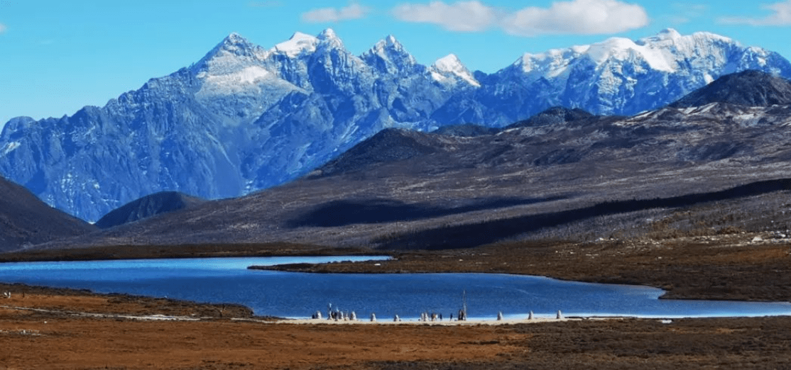 首先第1站是新都桥,新都桥是川西必经之路,不同的季节这里都有不同的美景。在这里可以欣赏到碧蓝的湖泊,梦笔山在湖泊的照耀下显得格外美丽。