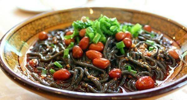 这种黑面一直是手工制作的。清热解毒,降压。只有湖南、广东、贵州、贵州才能吃到。