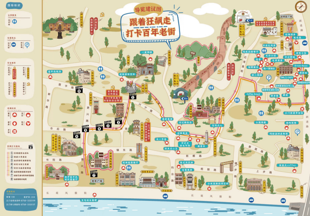 制作“狂飙”主题手绘导览图、在电影拍摄点设置打卡标识、推出“乐游蓬江 一路狂飙”APP等,为游客提供吃住玩全方位指南。