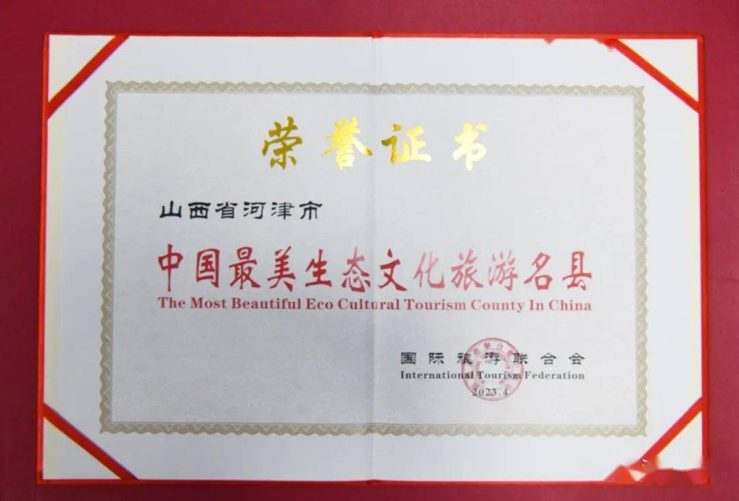 4月22日,在西安市举办的第二届文旅融合发展大会上,国际旅游联合会授予河津市“中国最美生态文化旅游名县”称号。