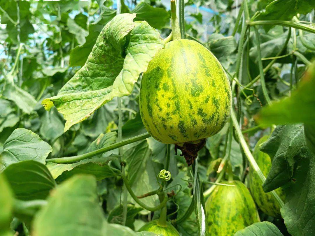 乐亭万事达生态农业发展有限公司的甜瓜生长姿势与常规的地爬式不同,一个个饱满圆润吊着长在半空中,十分诱人。大棚里的瓜农虽说年龄不大,但却是一个种瓜的老把式,她能根据甜瓜的颜色和大小,准确判断甜瓜在各个生长阶段的口感。