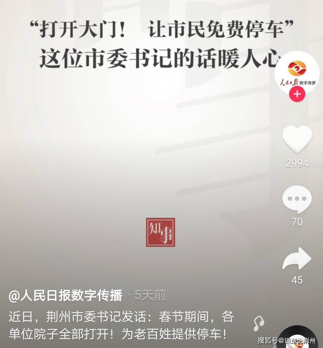 其实很多城市也曾有过一些管理上的亮点。2021年春节期间,湖北荆州要求城区市级各行政单位,春节期间开放办公停车场,让老百姓免费停车、方便上厕所的新闻就曾上热搜,被中央、省市各级媒体转载,在网上掀起热议,引起一片好评。