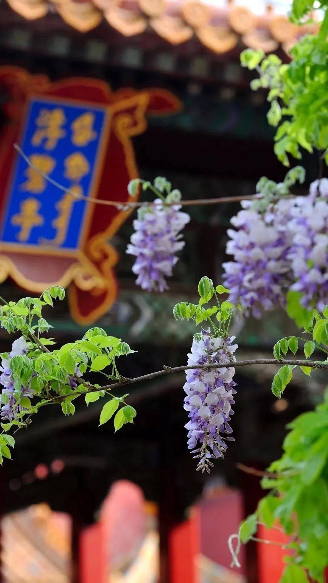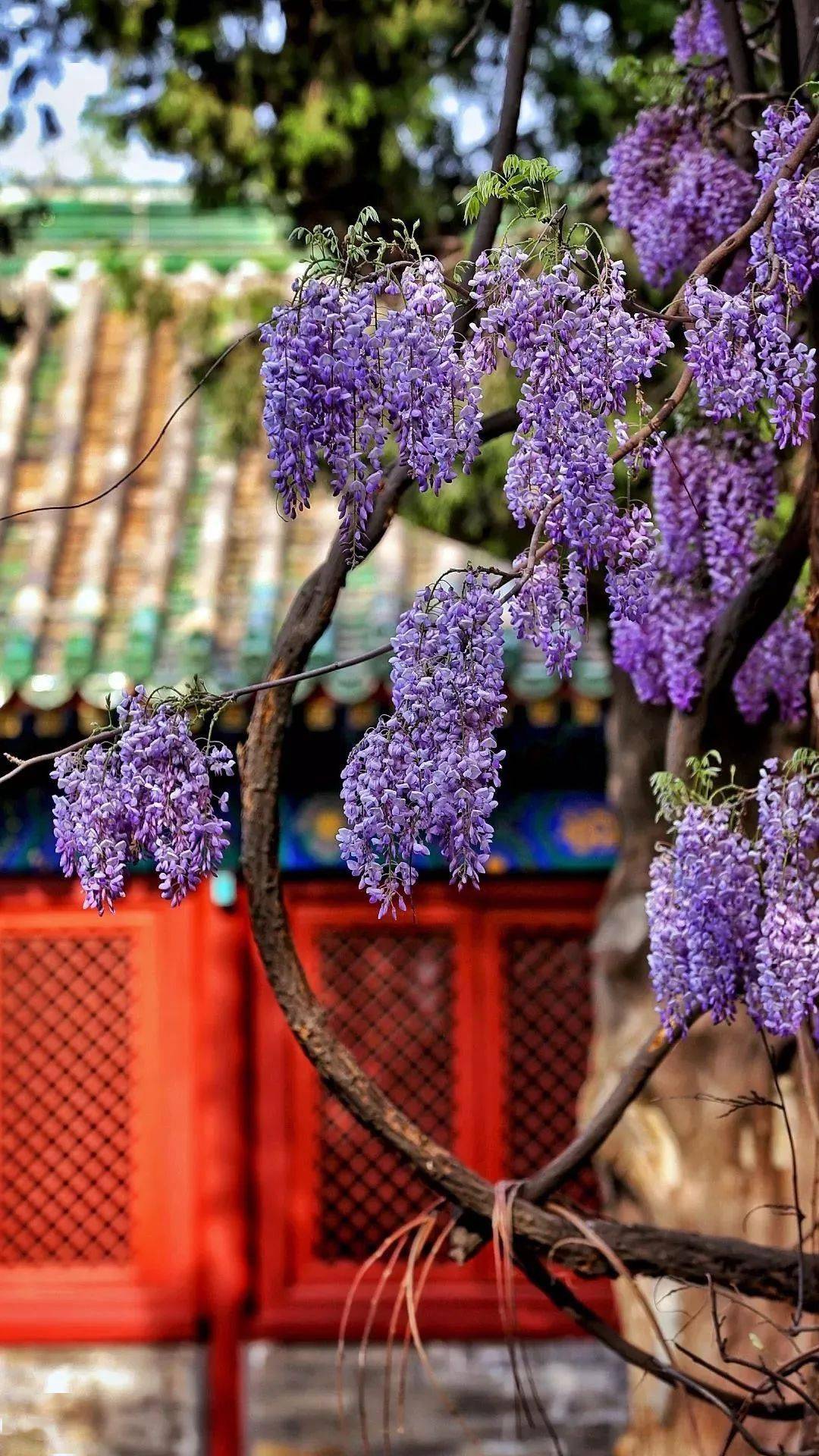 御花园浮碧亭前的紫藤,垂下簇簇繁花