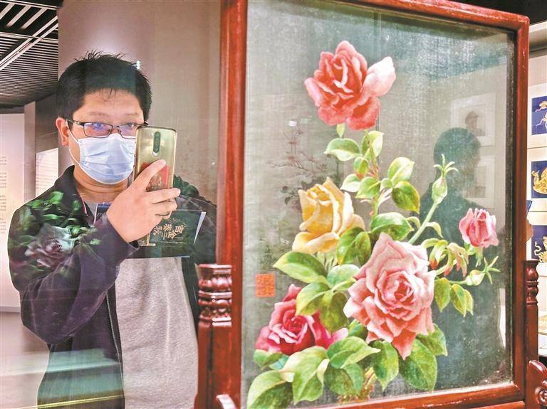 市民打卡深圳博物馆(古代馆)的苏绣艺术文献展。 深圳特区报记者 胡蕾 摄
