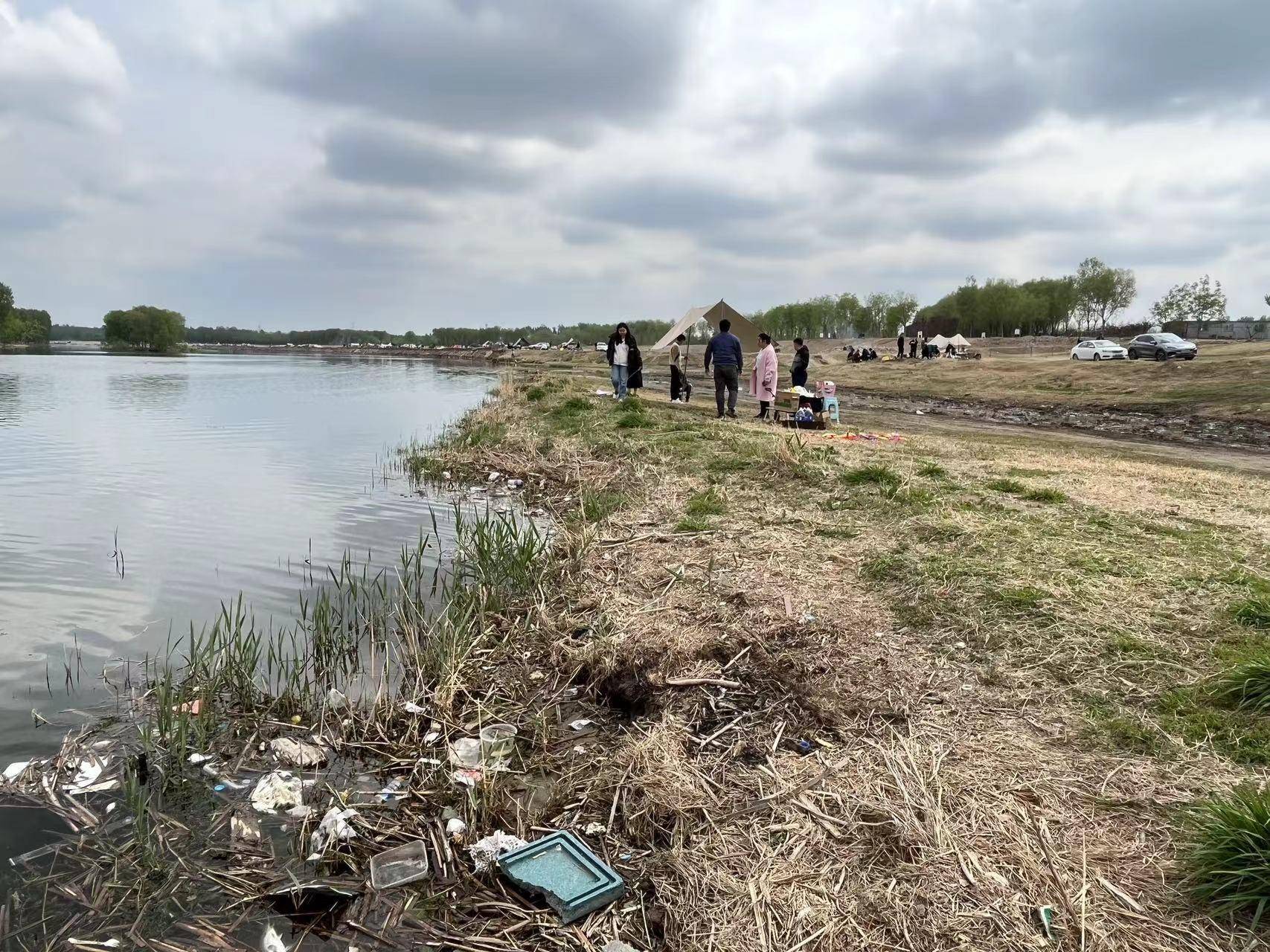 高尔夫球场虽然得到了治理,温榆河的露营乱象却没有刹住。紧挨着高尔夫球场的开放河段,一顶顶帐篷沿河搭建,烧烤的烟雾不时从树林里升起,芦苇丛里和草地上遗留下烧过的炭和卫生纸、塑料瓶等垃圾。一名市民表示,他本来是想去高尔夫球场的,没想到绕了一圈才发现已经被封,看到旁边也有很多人露营,就加入了进来。还有市民表示,看了博主分享的照片,发现这里拍出的照片并不比高尔夫球场里差,于是特地和朋友一起来打卡。