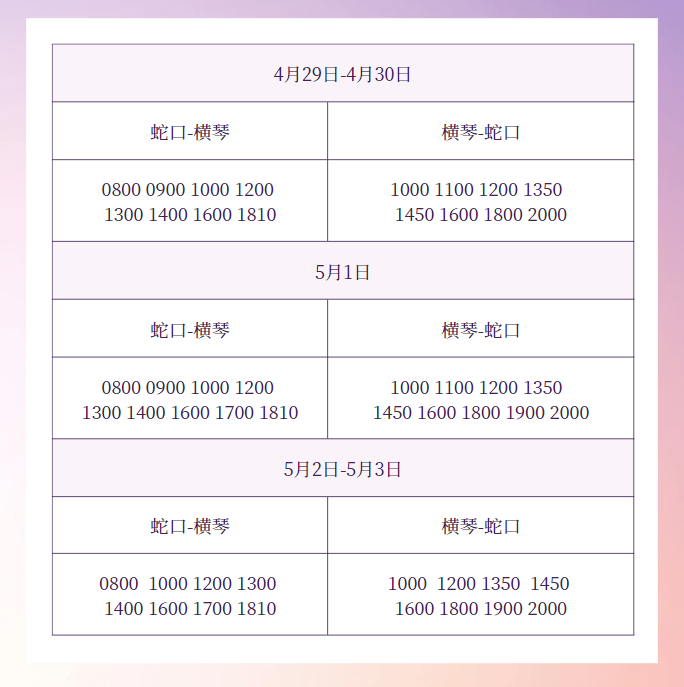 ➤ 五一期间增开横琴客运码头往返深圳蛇口航线