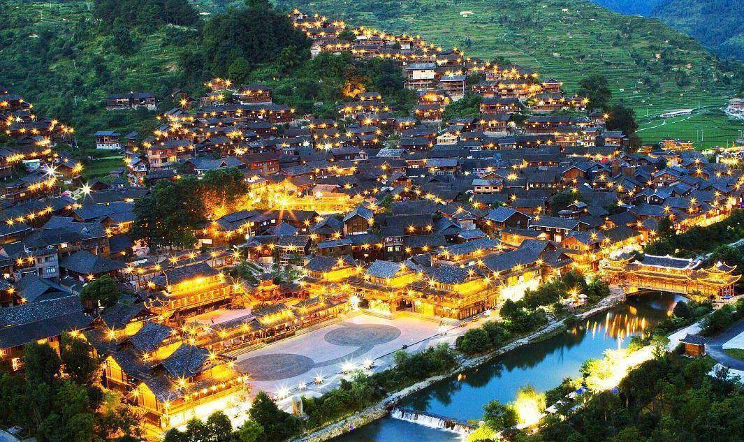 这里的夜景也很有意思。每到傍晚,万户灯火通明,西江千户苗寨成为一片灯海。